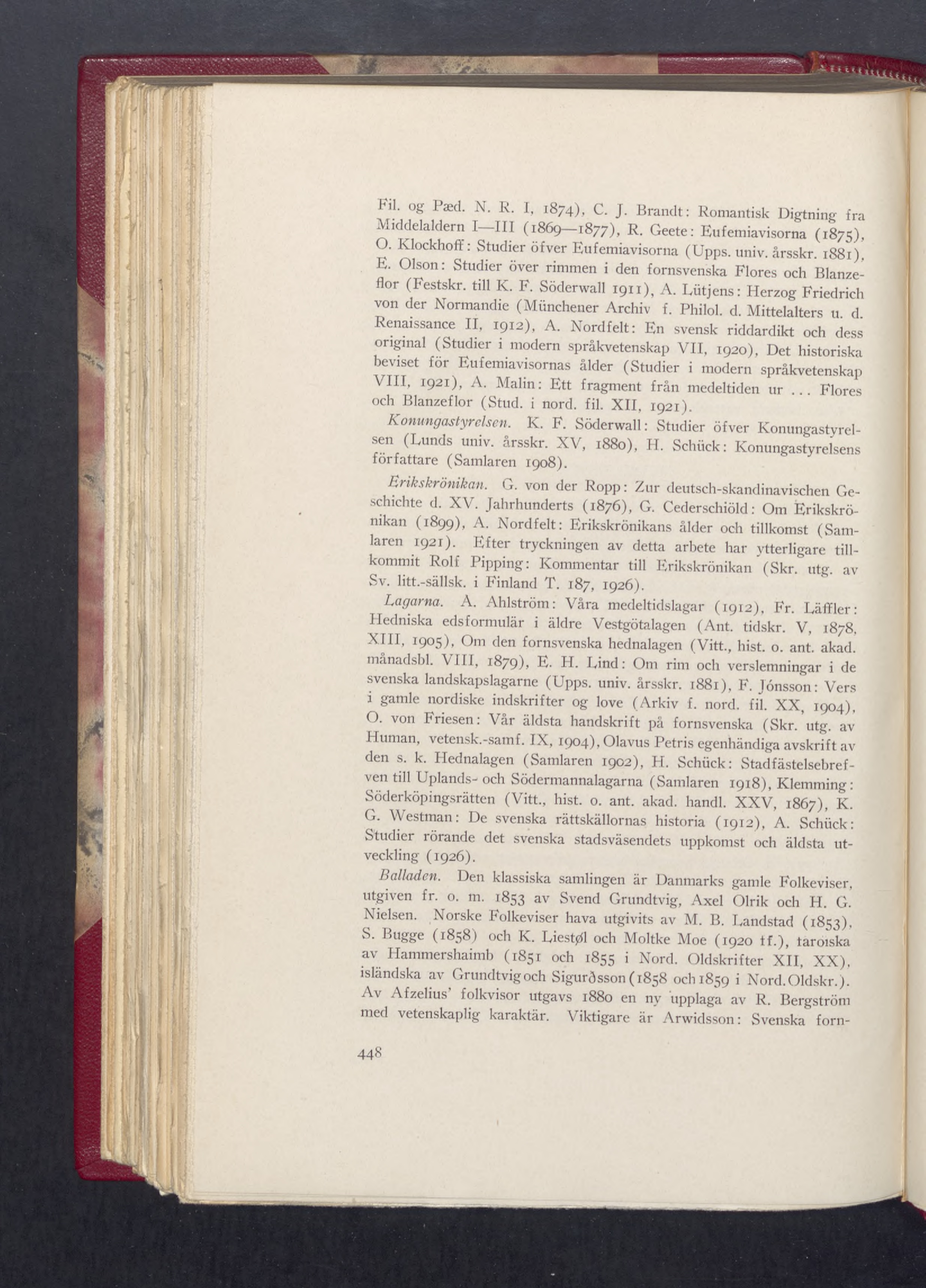 Fil. og Pæd. N. R. I, 1874), C. J. Brandt: Romantisk Digtning fra