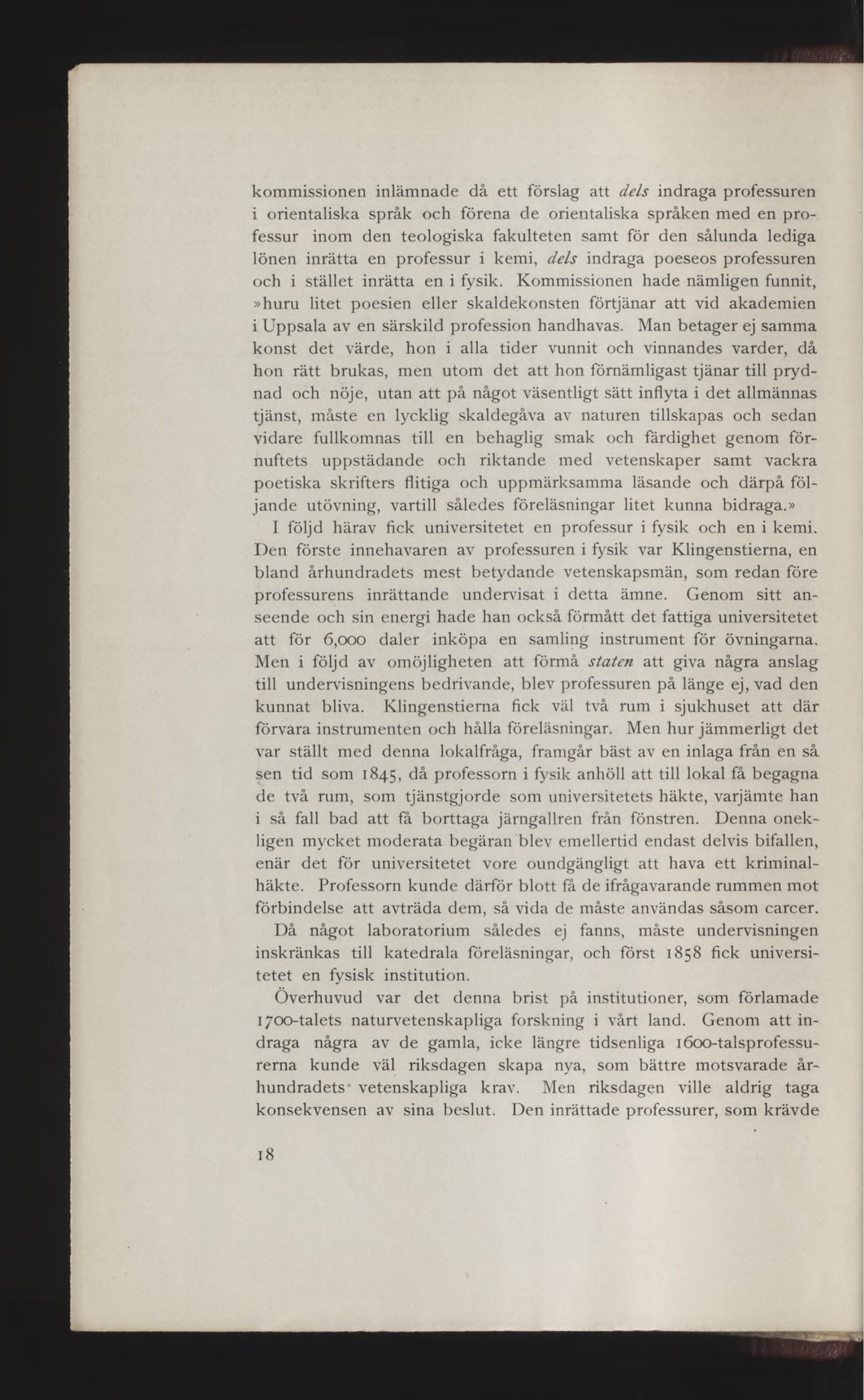 och i stället inrätta en i fysik. Kommissionen hade nämligen funnit,
