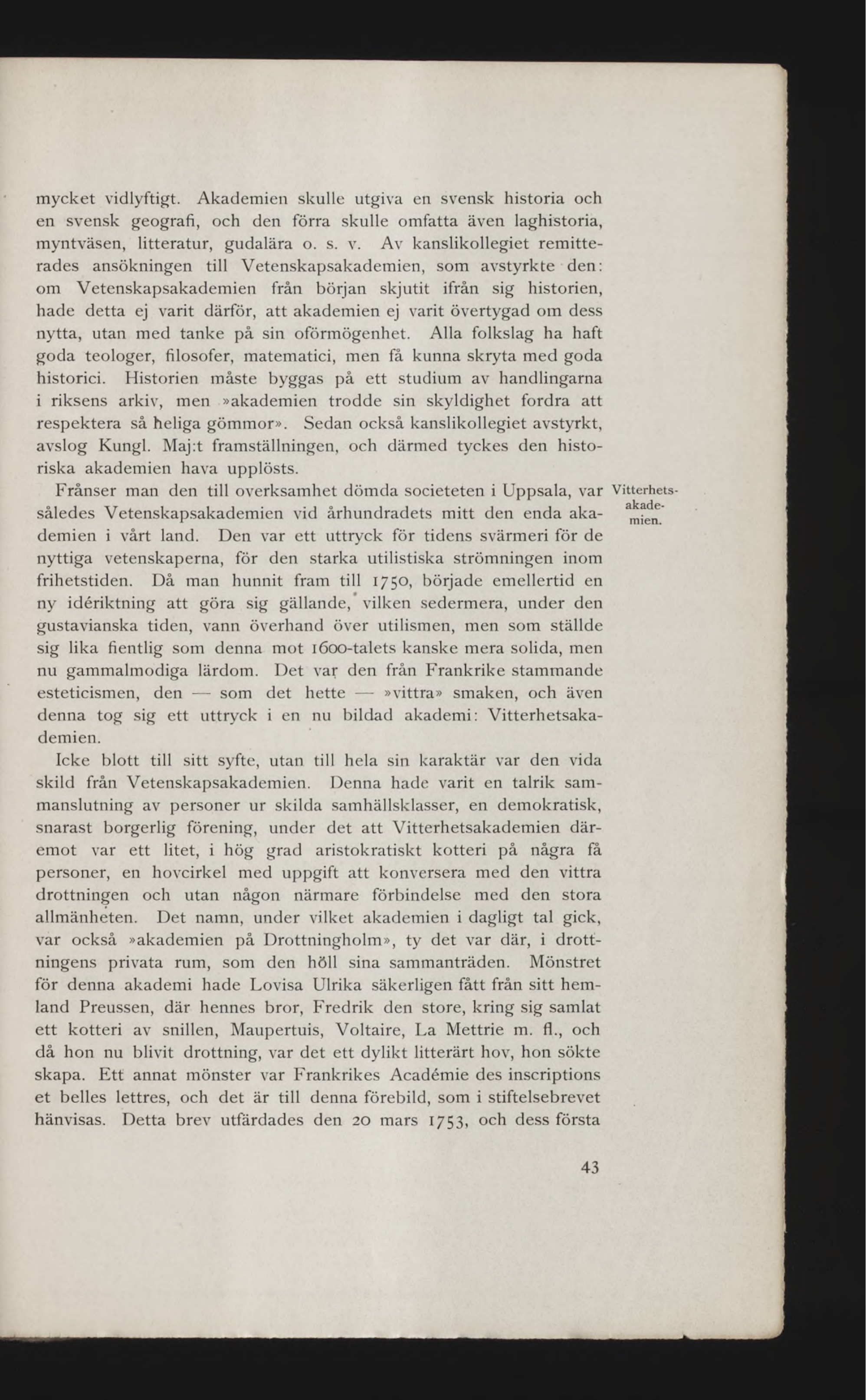 mycket vidlyftigt. Akademien skulle utgiva en svensk historia och