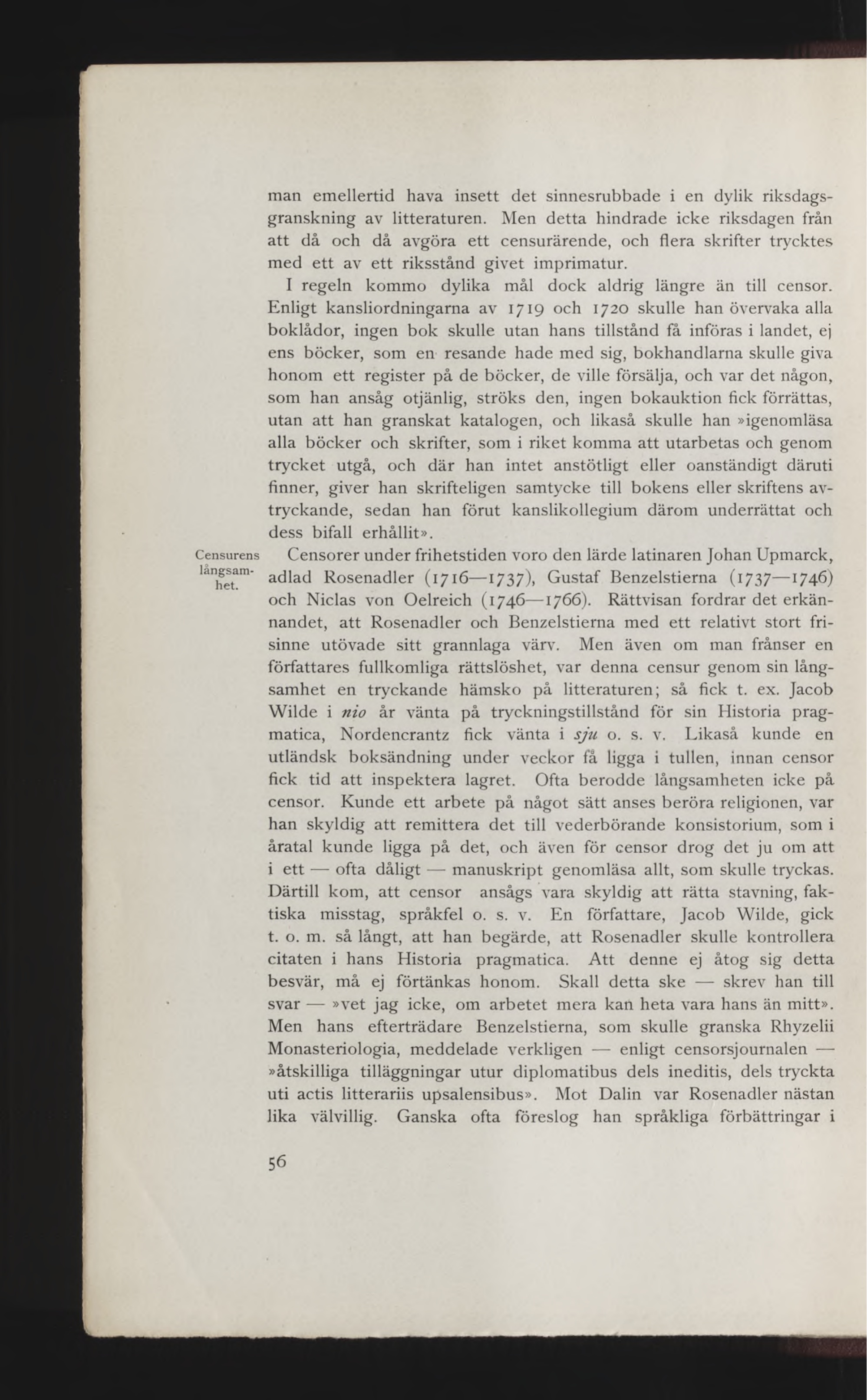 Censorer under frihetstiden voro den lärde latinaren Johan Upmarck,