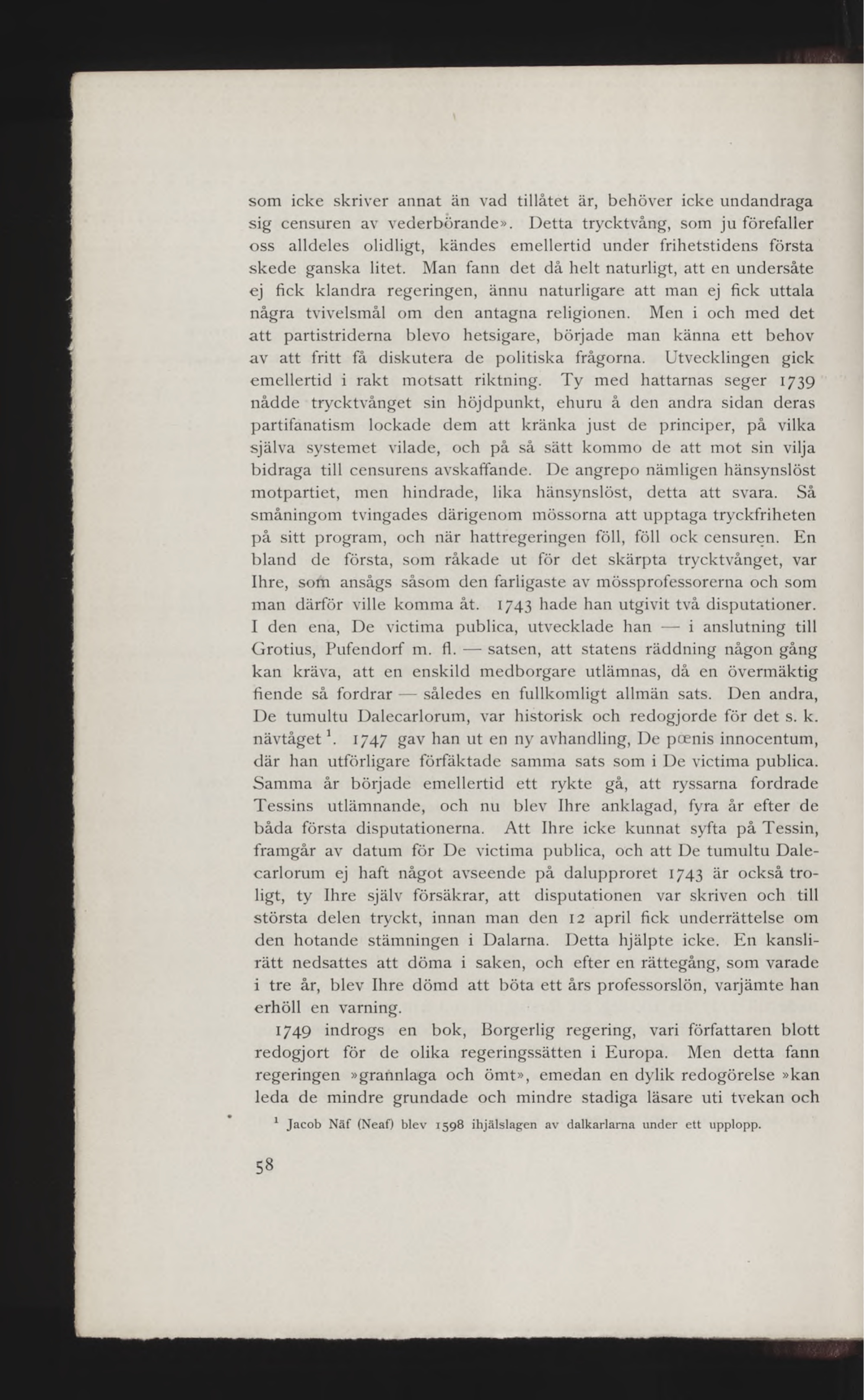 på sitt program, och när hattregeringen föll, föll ock censuren. En