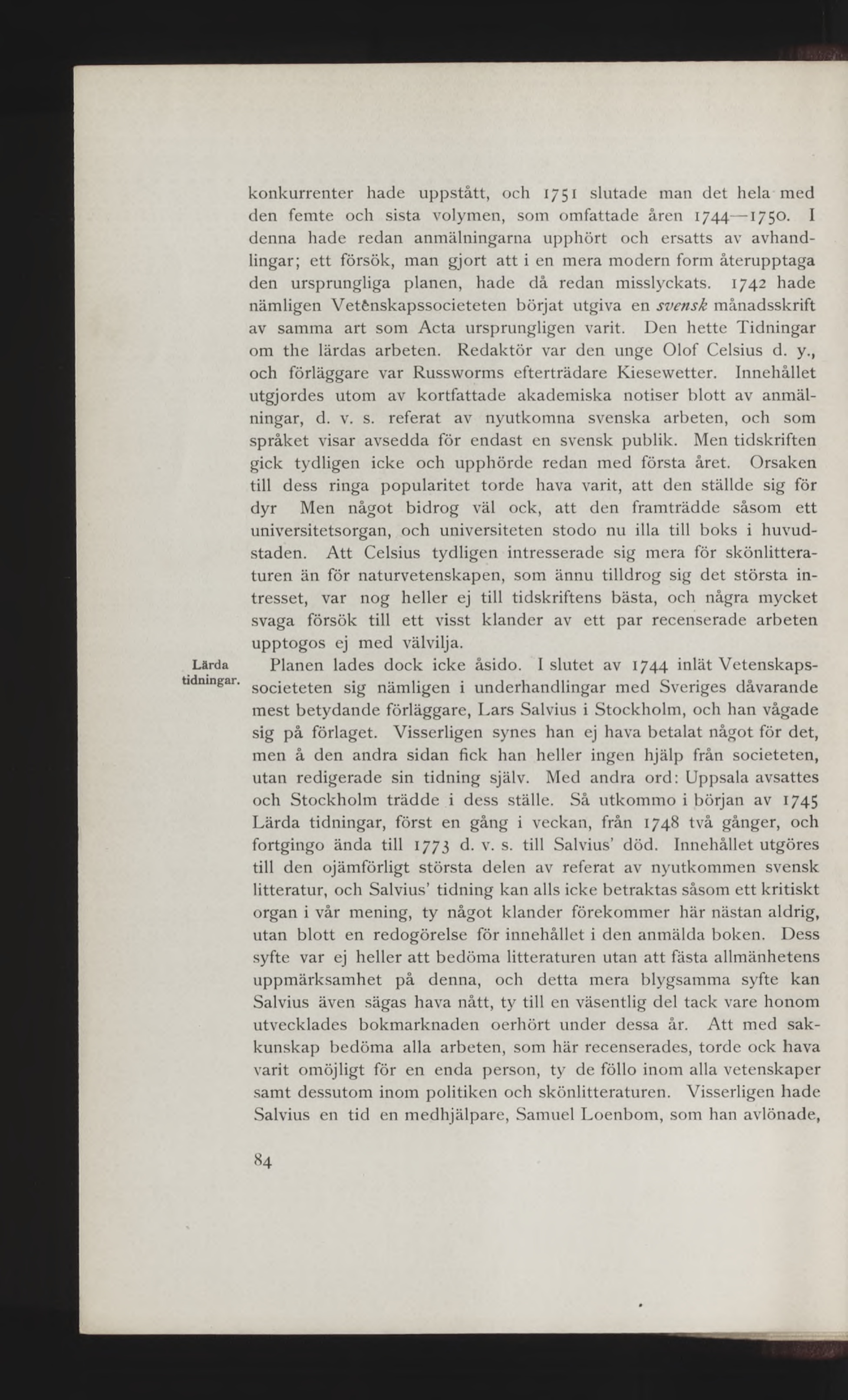 om the lärdas arbeten. Redaktör var den unge Olof Celsius d. y.,