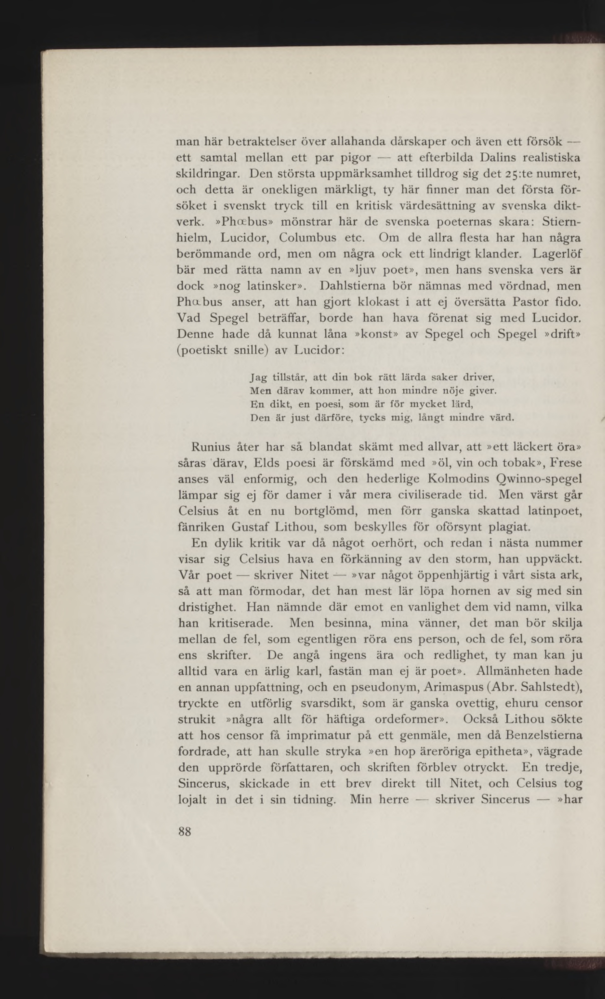 Vad Spegel beträffar, borde han hava förenat sig med Lucidor.