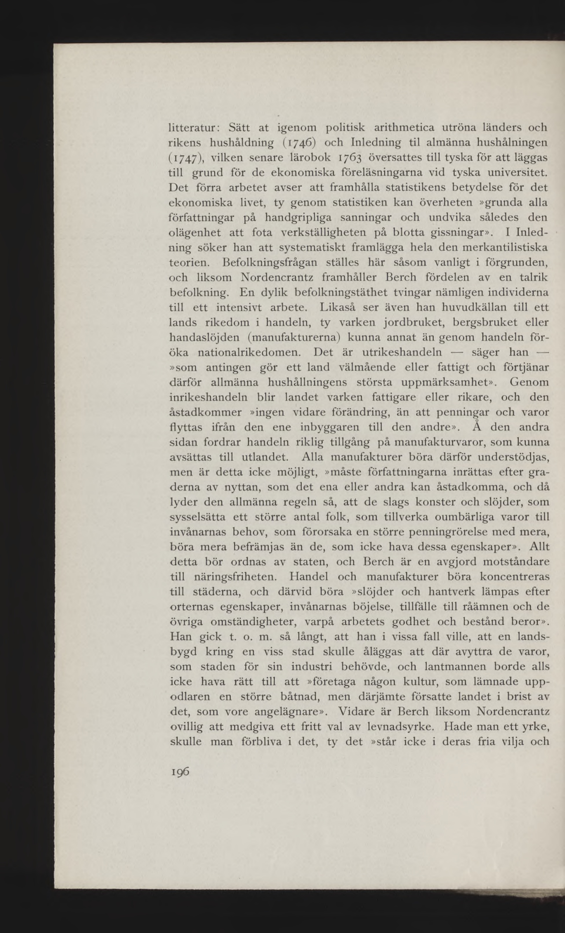 ekonomiska livet, ty genom statistiken kan överheten »grunda alla
