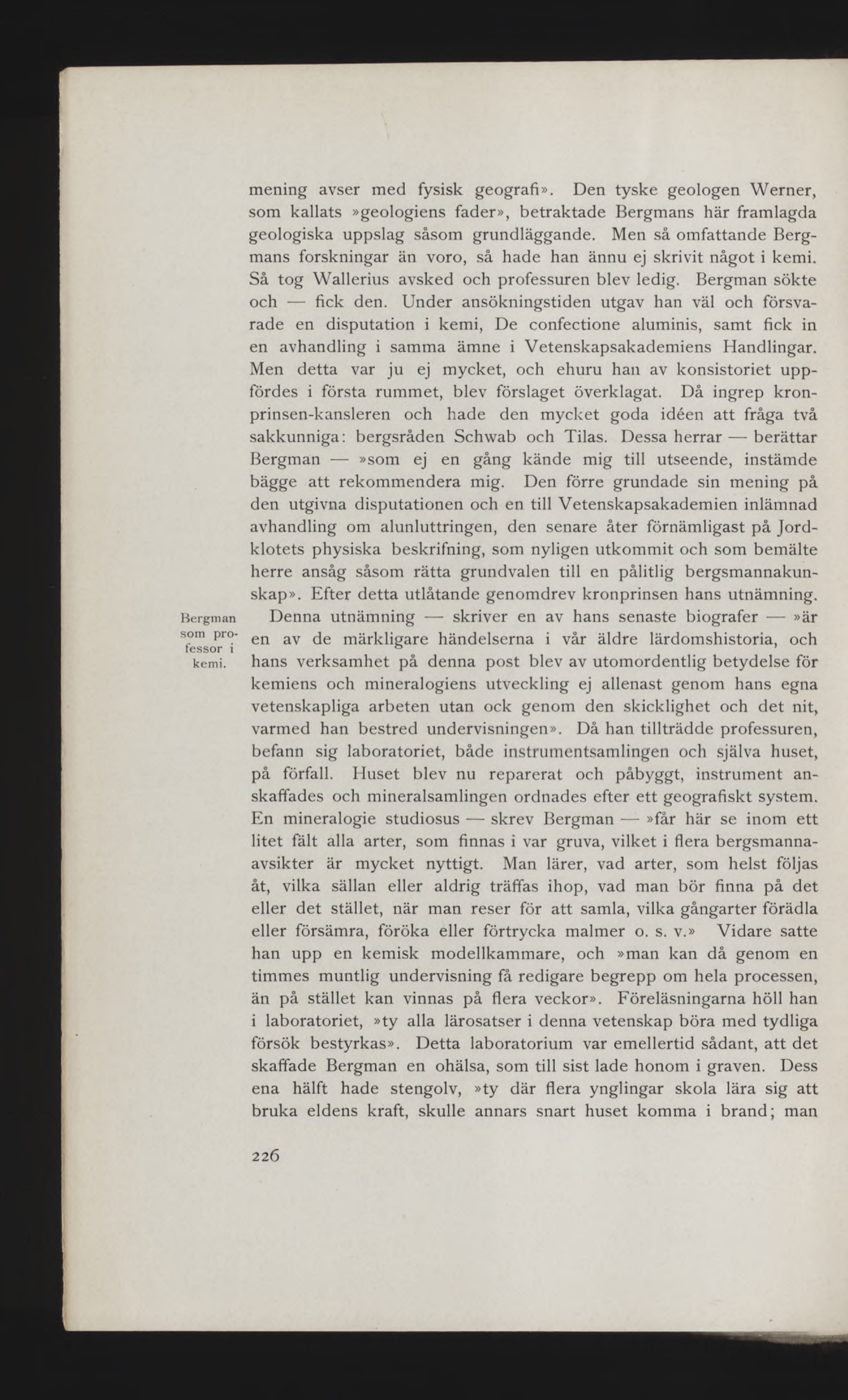 Bergmans forskningar än voro, så hade han ännu ej skrivit något i kemi.