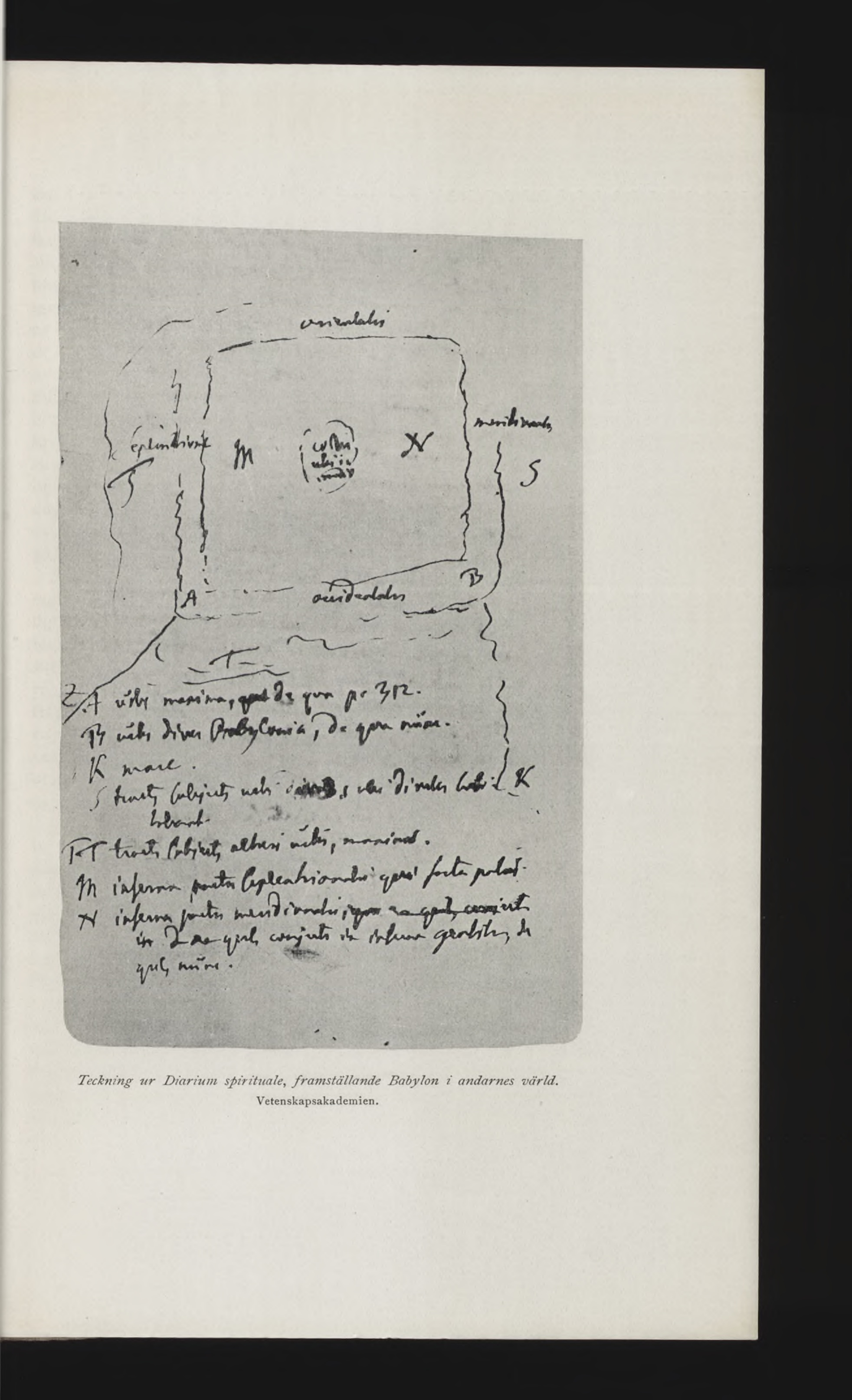 Teckning ur Diarium spirituale, framställande Babylon i andarnes värld. Vetenskapsakademien. |