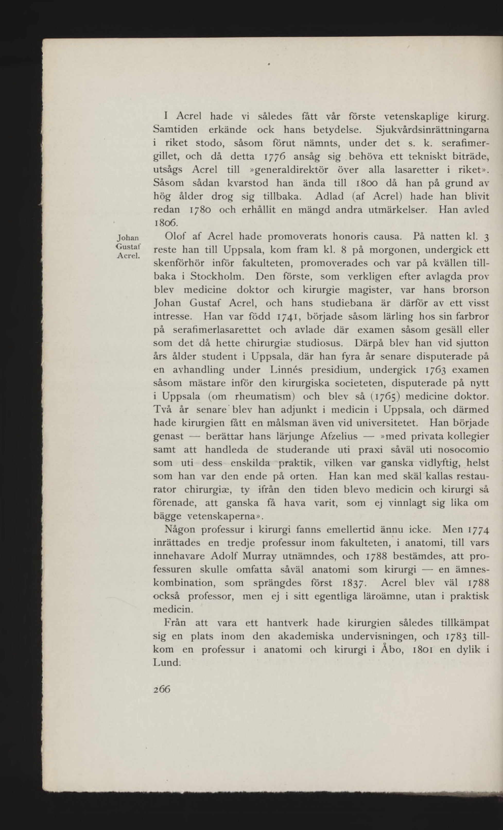 I Acrel hade vi således fått vår förste vetenskaplige kirurg.