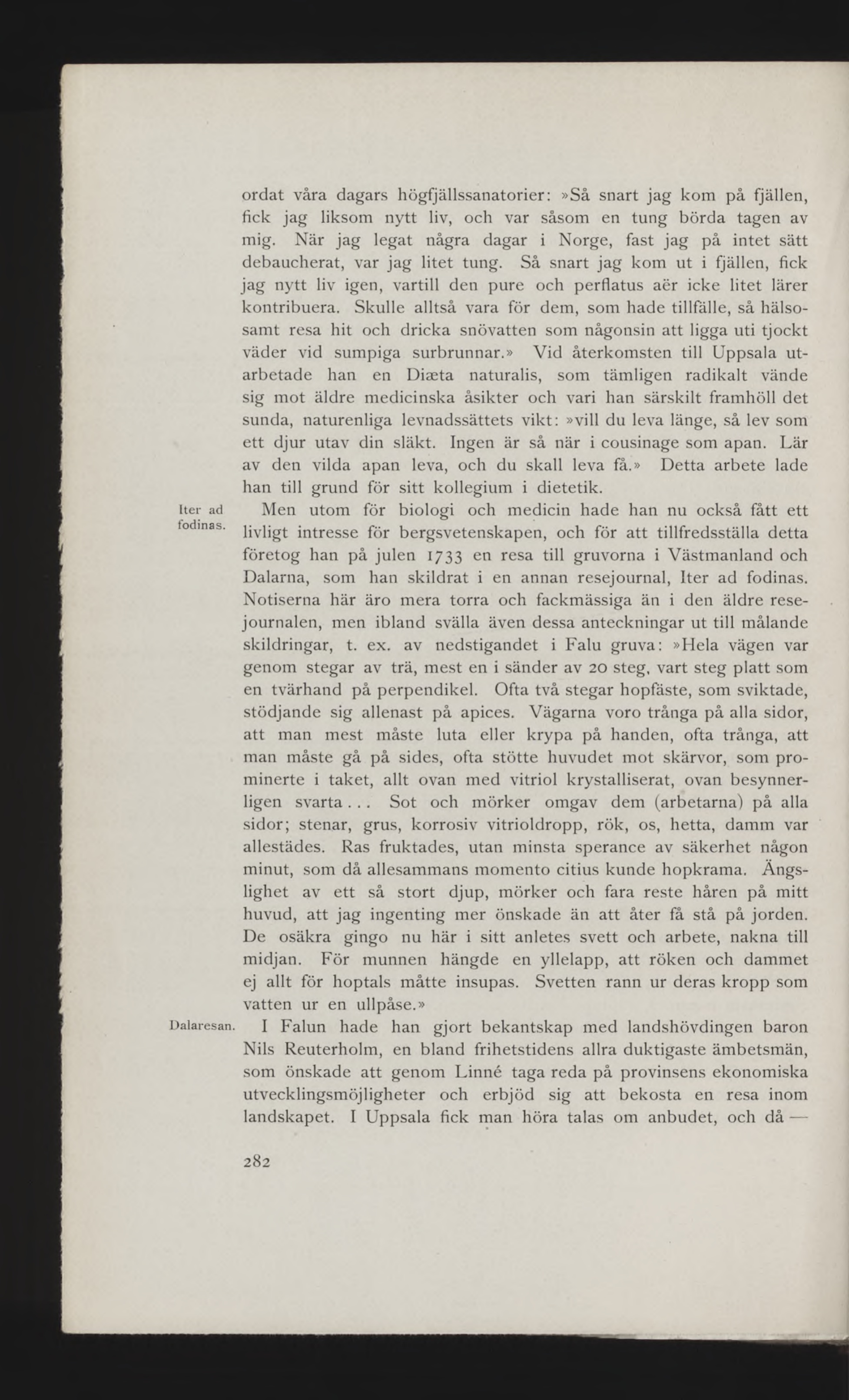 Dalarna, som han skildrat i en annan resejournal, Iter ad fodinas.