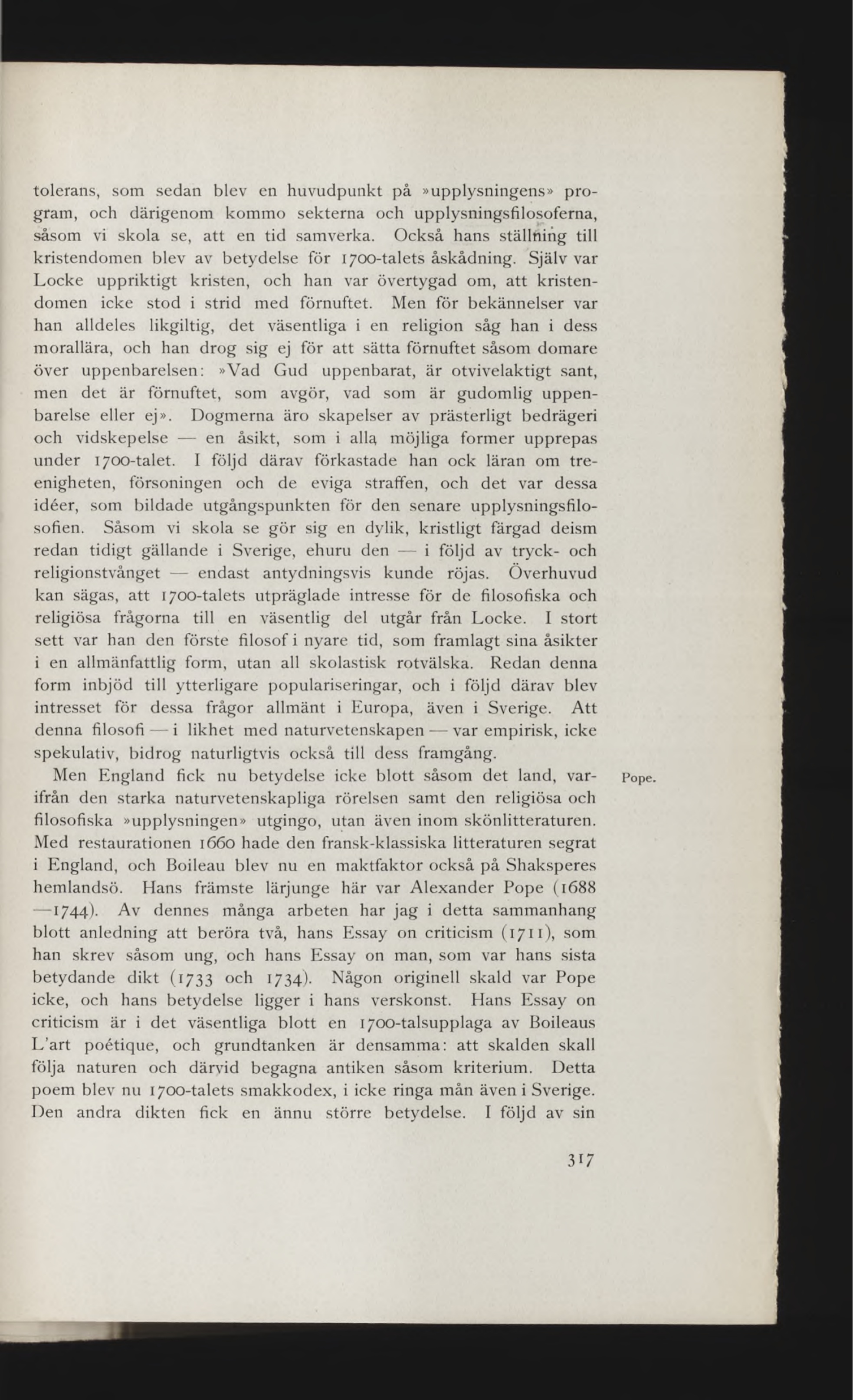 tolerans, som sedan blev en huvudpunkt på »upplysningens»