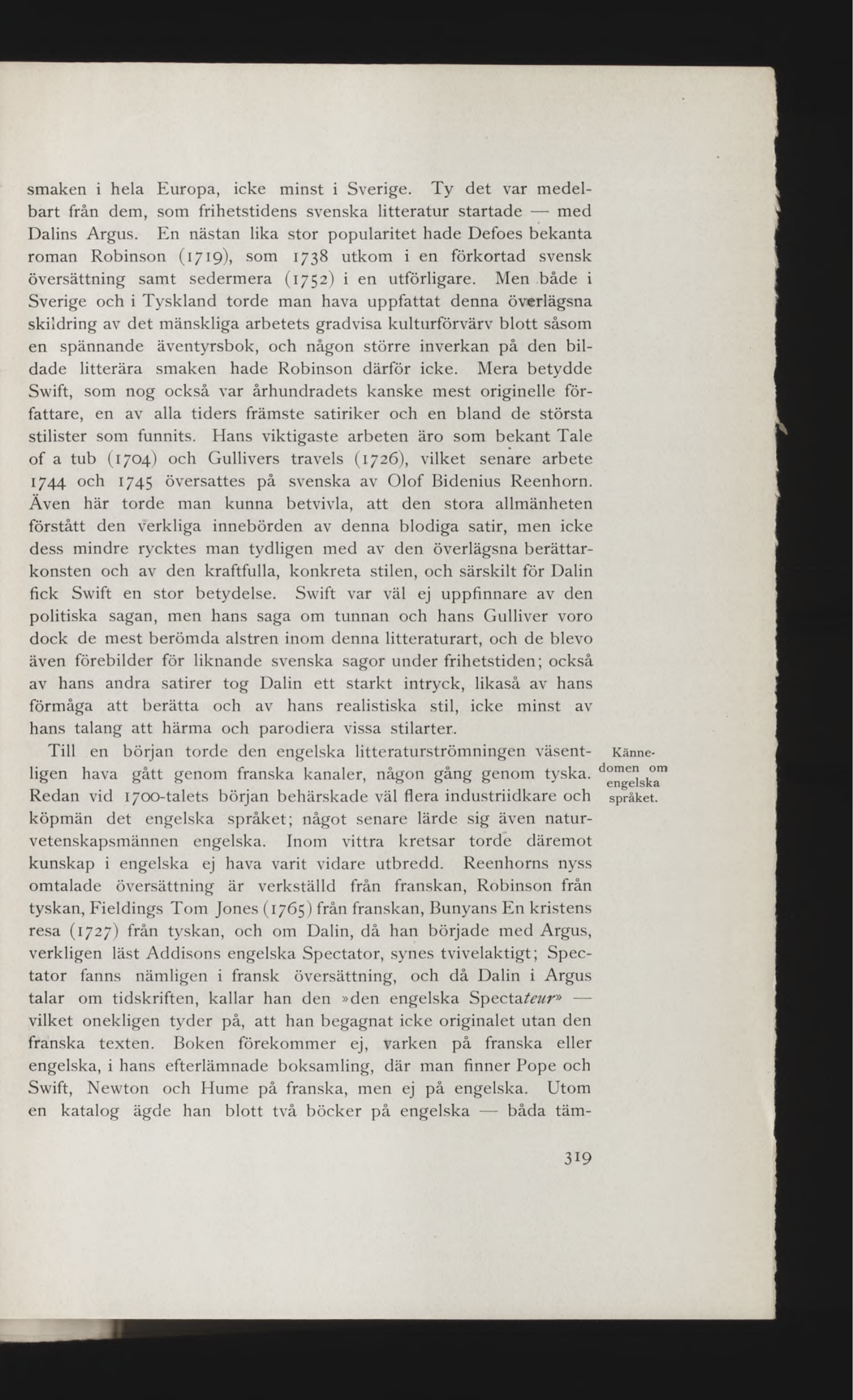 Dalins Argus. En nästan lika stor popularitet hade Defoes bekanta