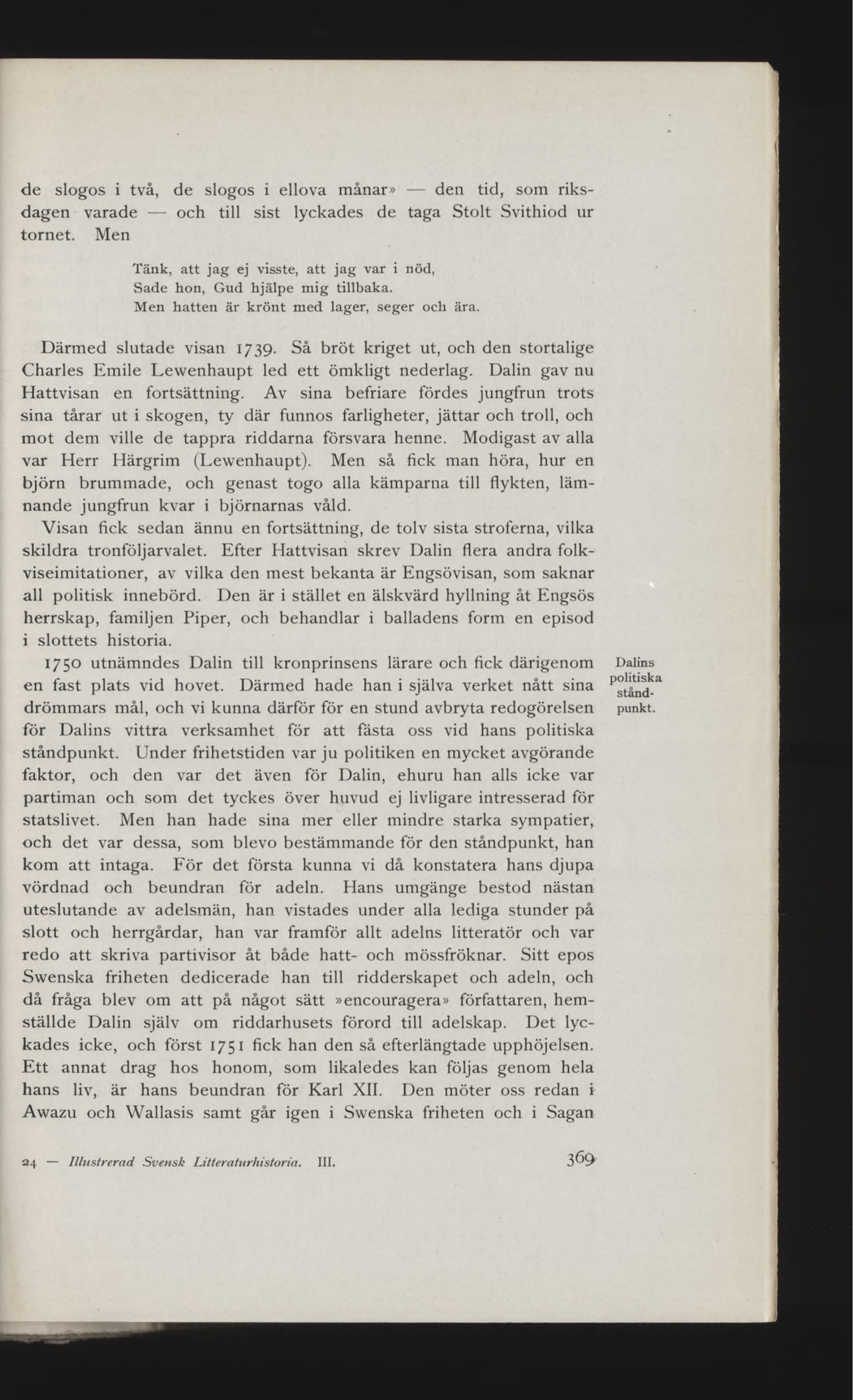 för Dalins vittra verksamhet för att fästa oss vid hans politiska