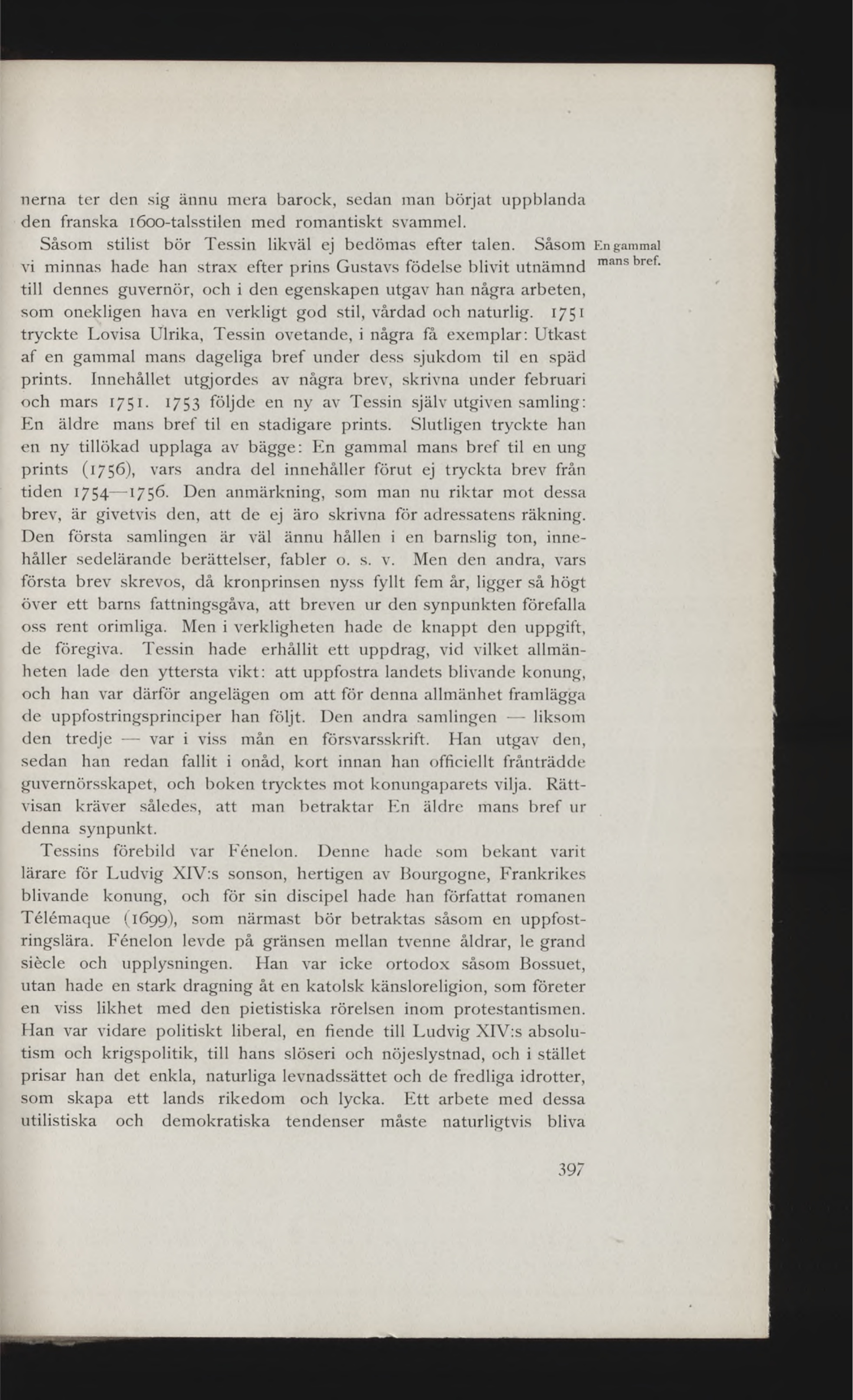 Tessins förebild var Fénelon. Denne hade som bekant varit