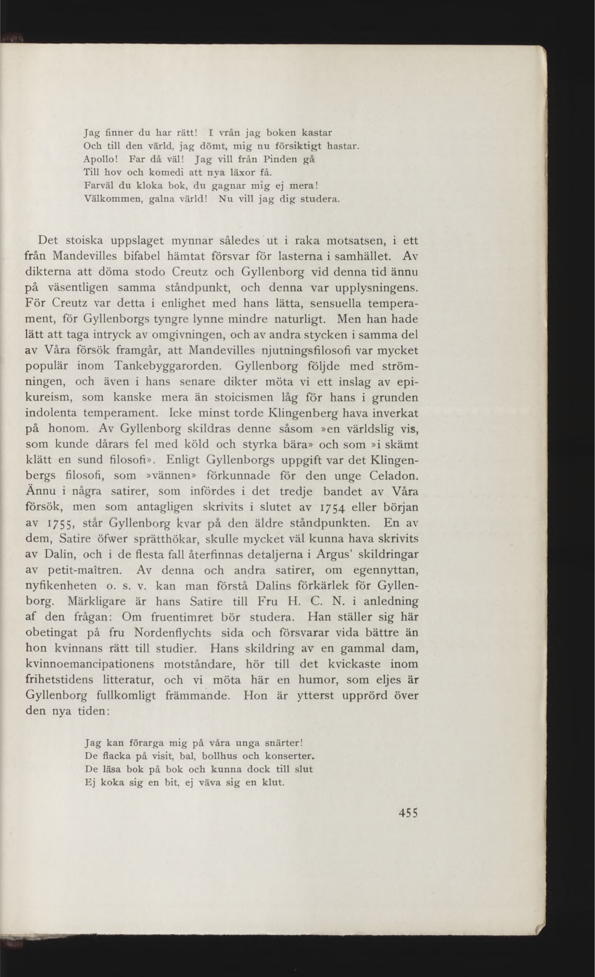 klätt en sund filosofi». Enligt Gyllenborgs uppgift var det