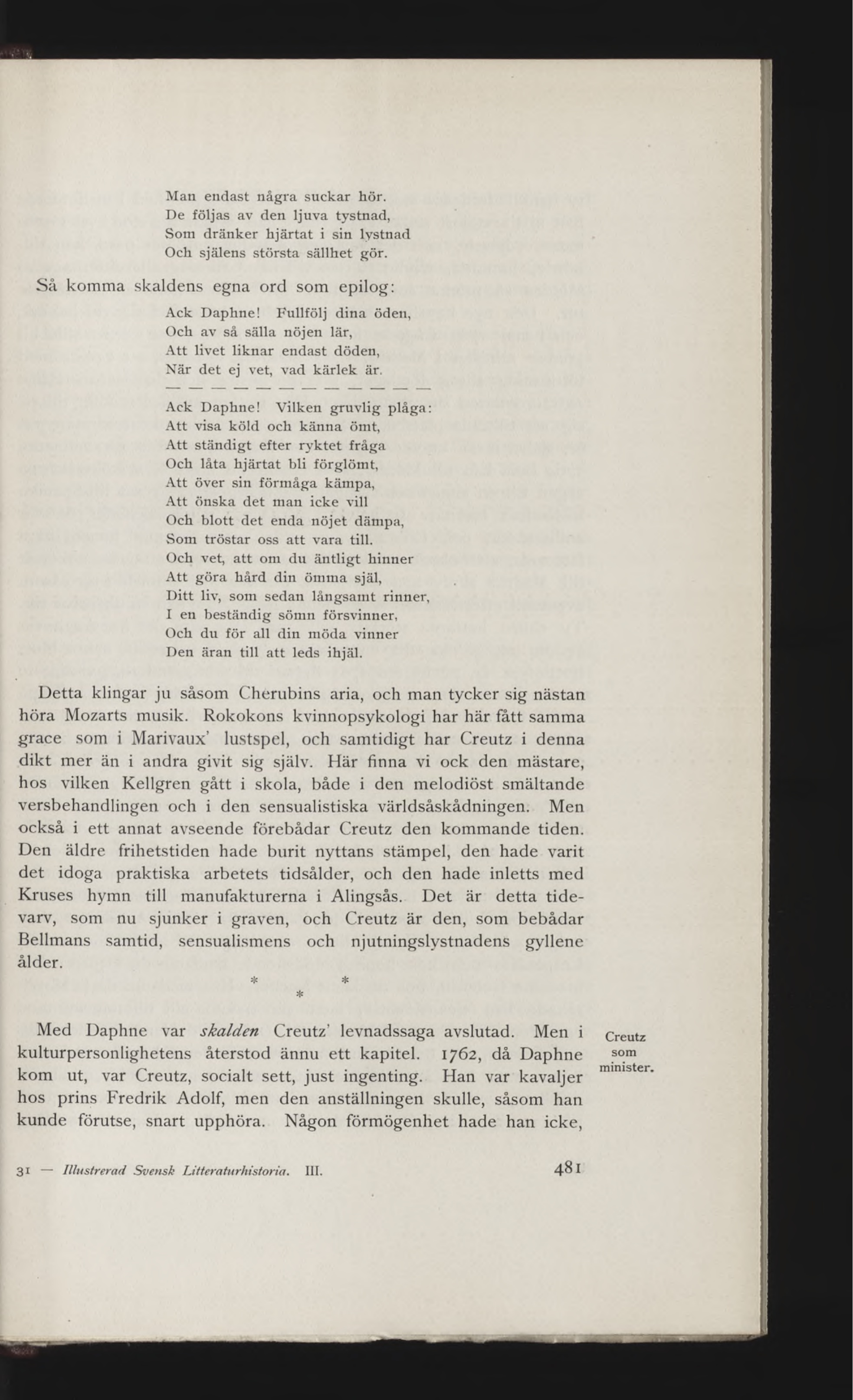 Med Daphne var skalden Creutz’ levnadssaga avslutad. Men i