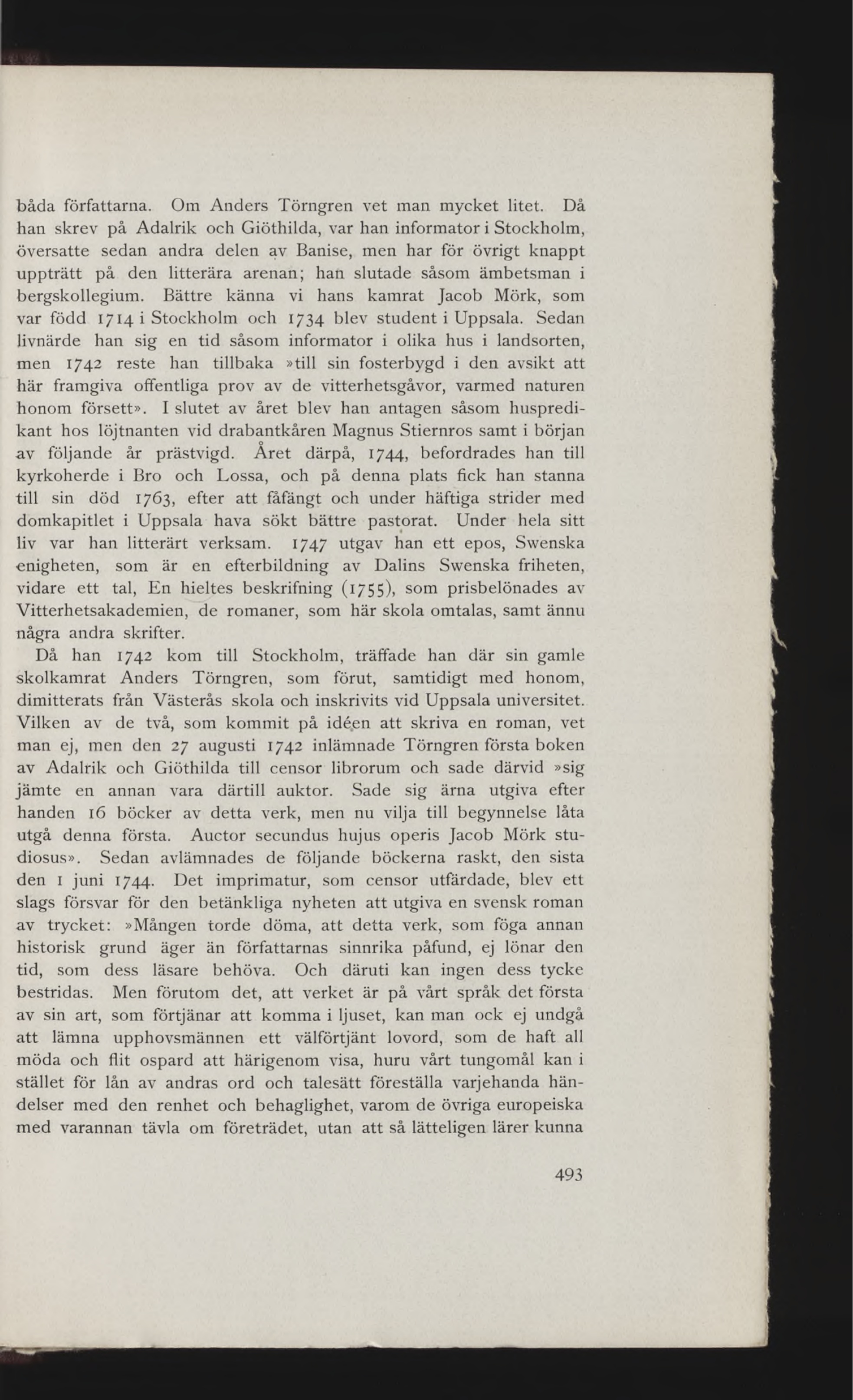 man ej, men den 27 augusti 1742 inlämnade Törngren första boken