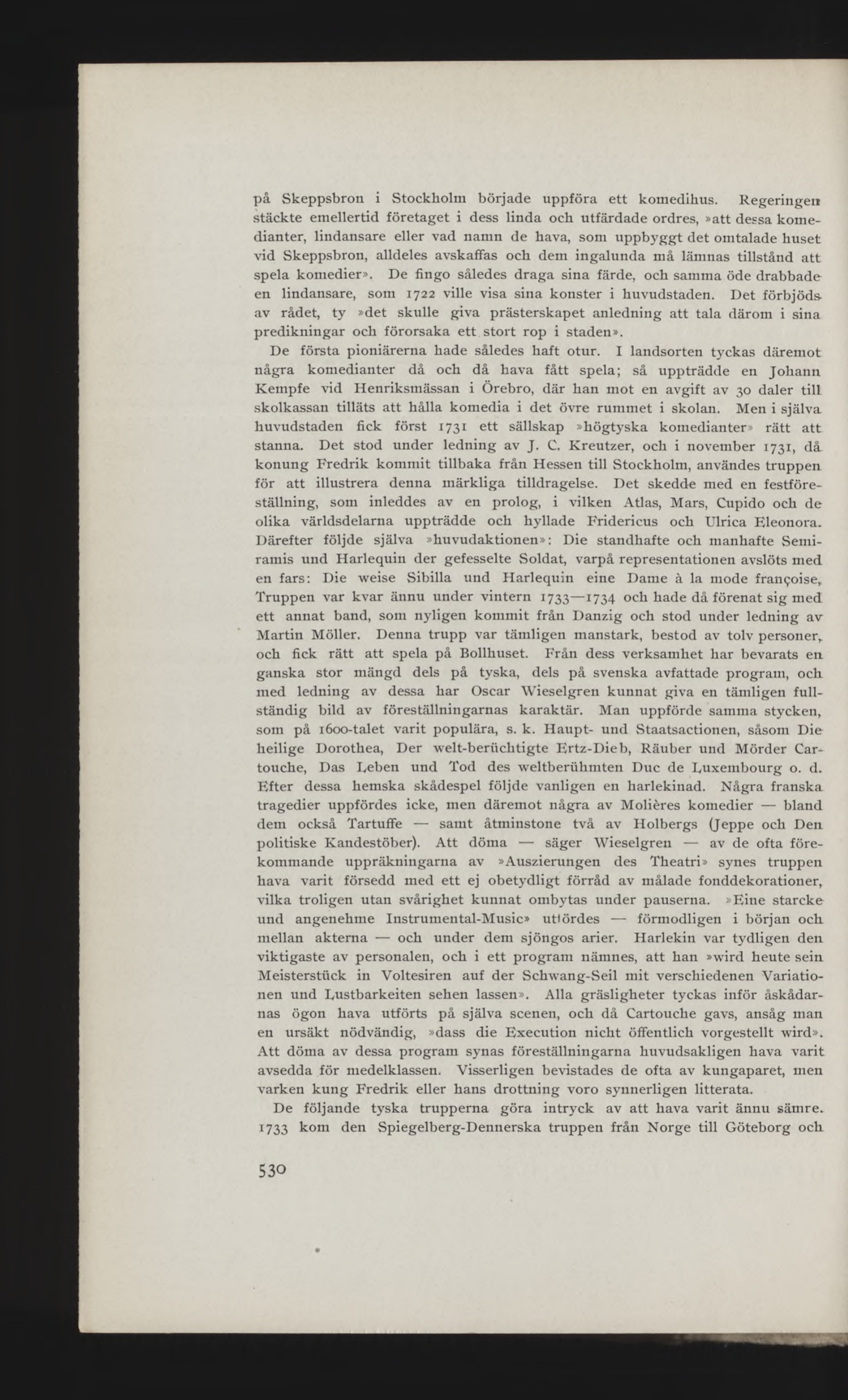 huvudstaden fick först 1731 ett sällskap »högtyska komedianter» rätt att