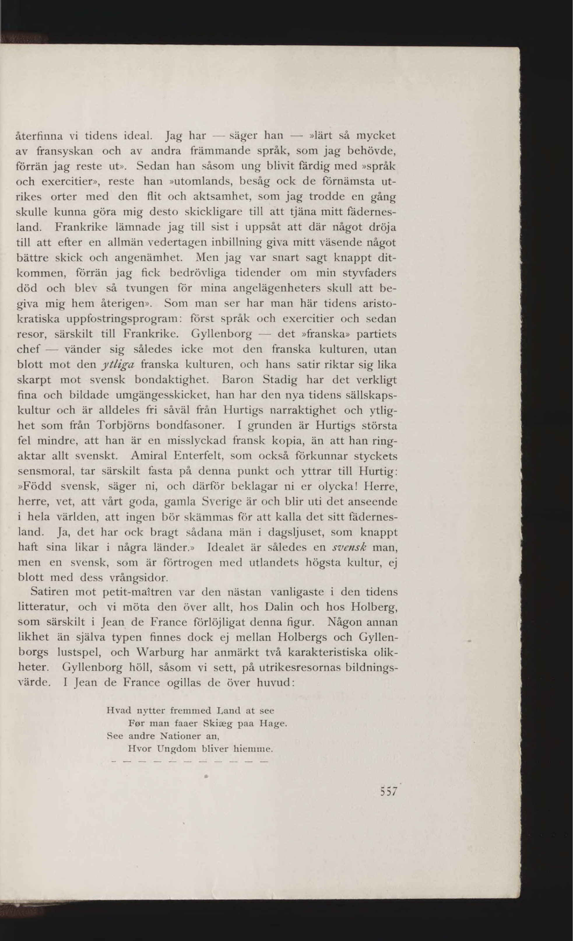 men en svensk, som är förtrogen med utlandets högsta kultur, ej