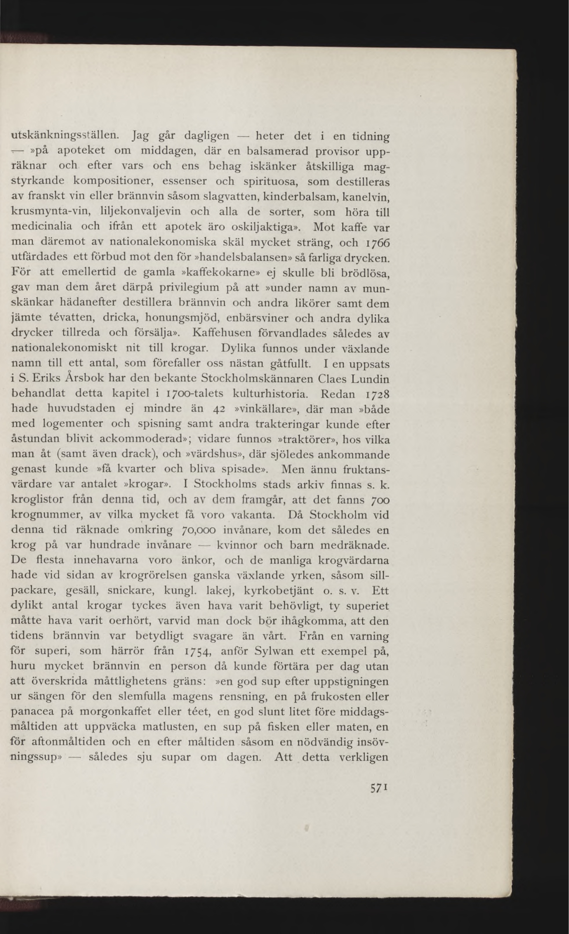 fruktansvärdare var antalet »krogar». I Stockholms stads arkiv finnas s. k.