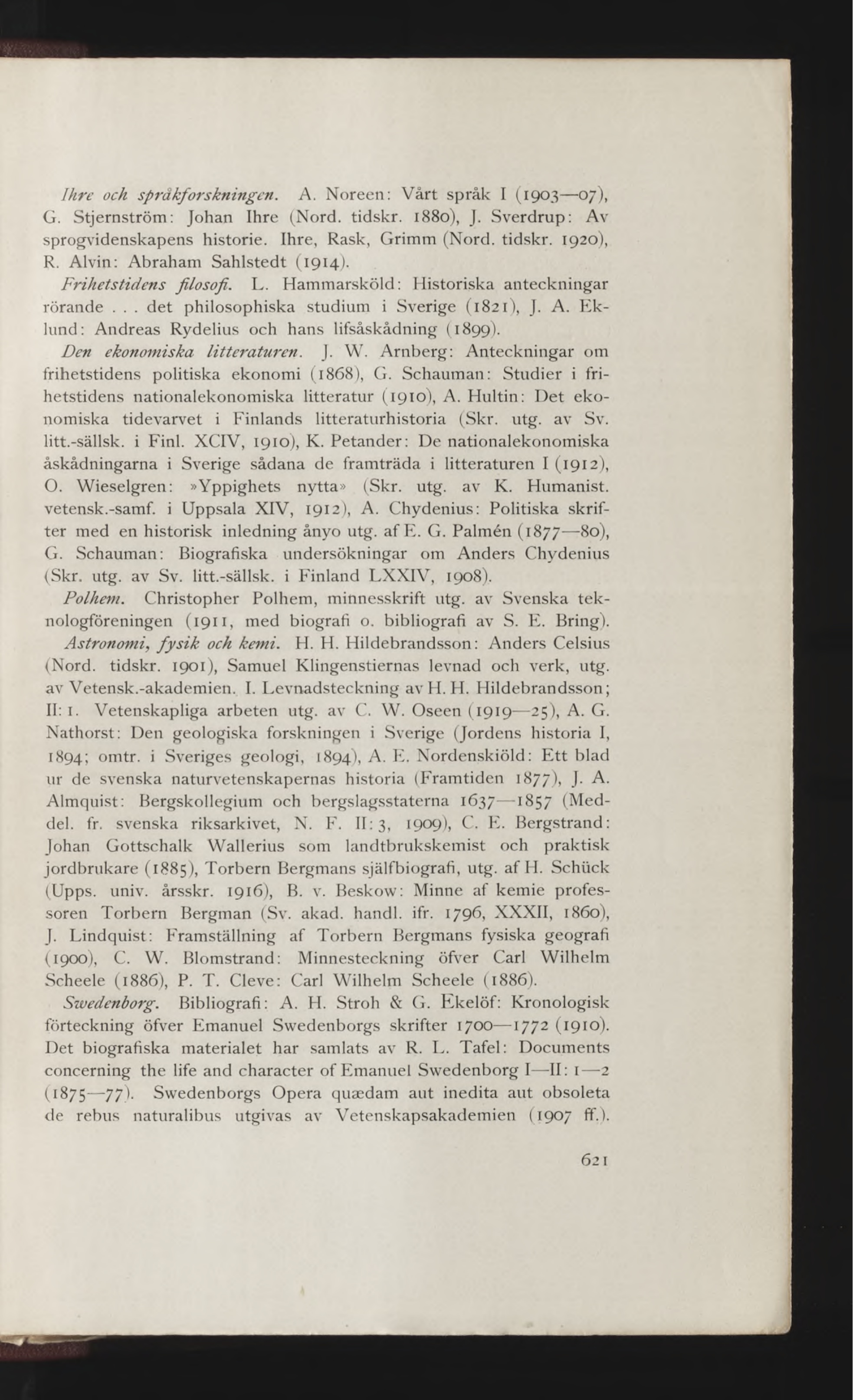 G. Stjernström: Johan Ihre (Nord. tidskr. 1880), J. Sverdrup: Av