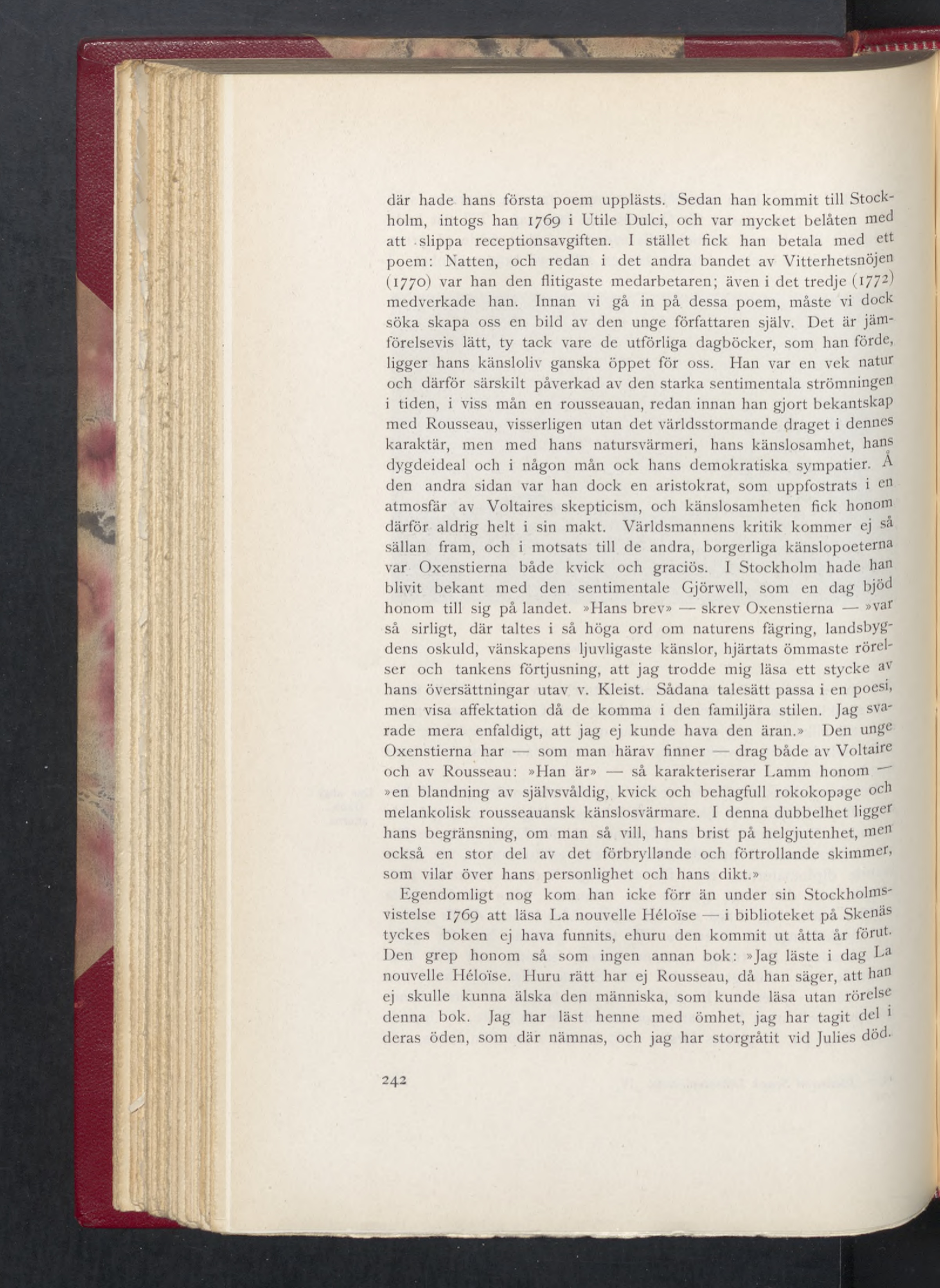 Stockholmsvistelse 1769 att läsa La nouvelle Héloïse — i biblioteket på Skenäs