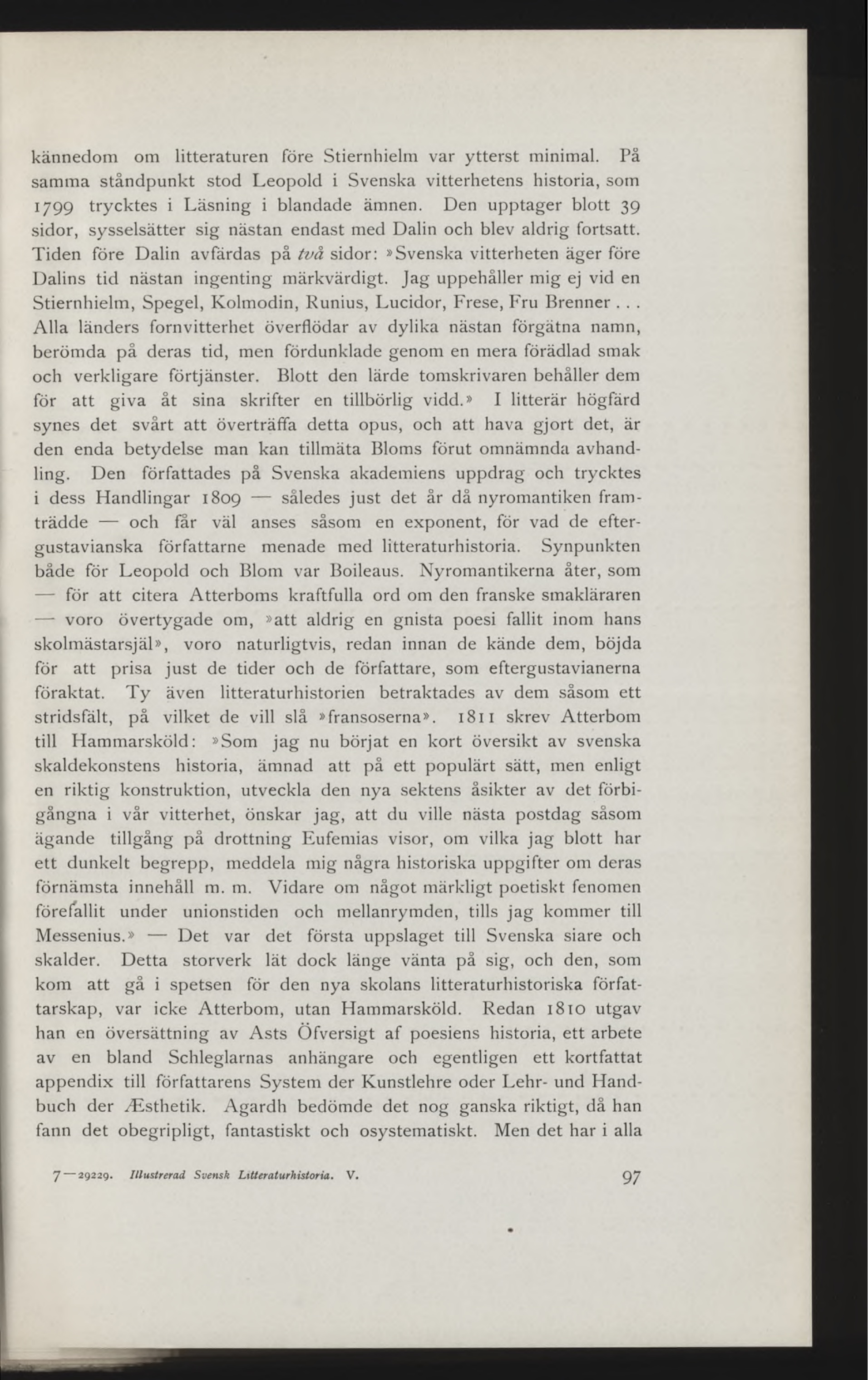 samma ståndpunkt stod Leopold i Svenska vitterhetens historia, som