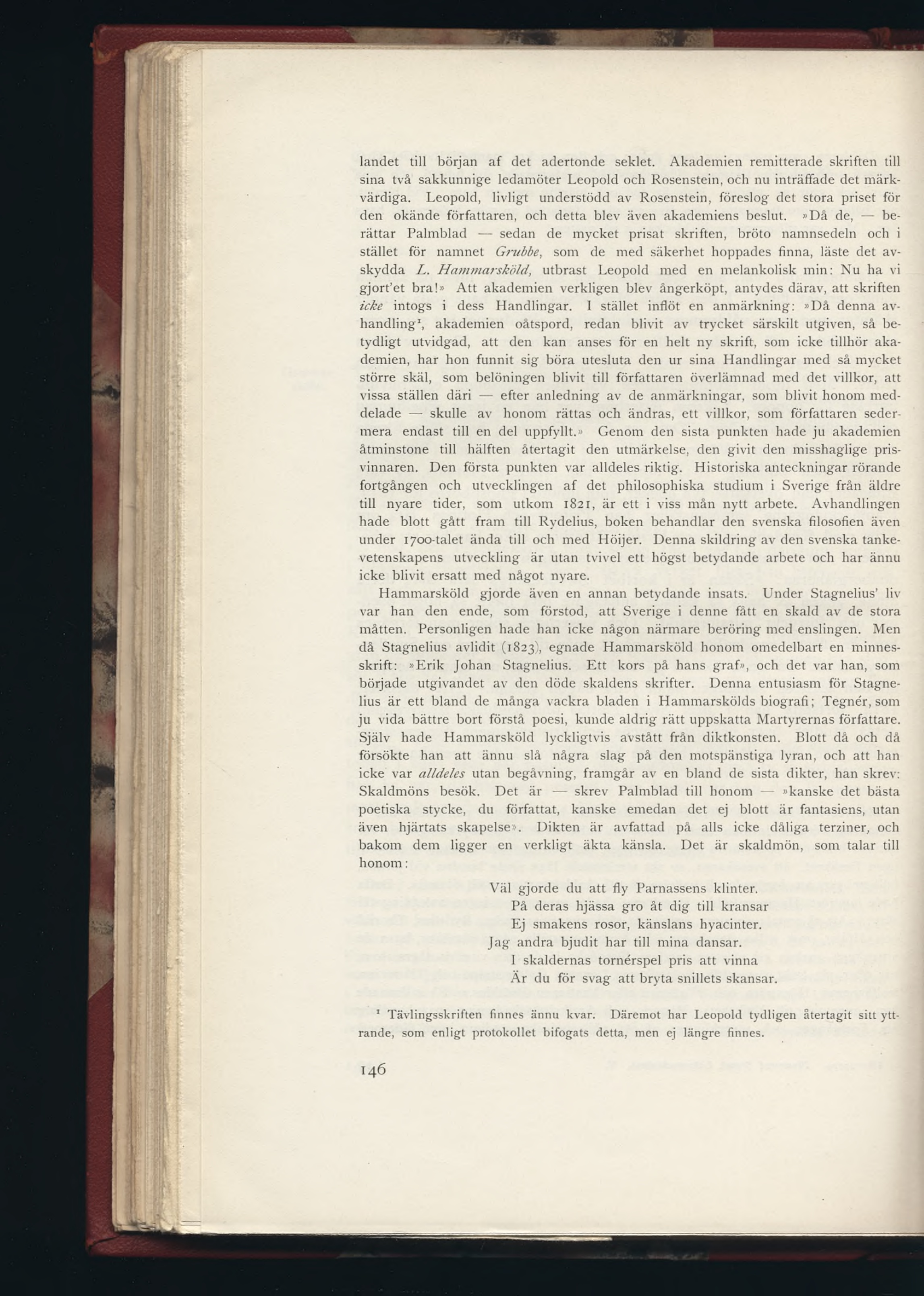 Stagnelius är ett bland de många vackra bladen i Hammarskölds biografi; Tegnér, som