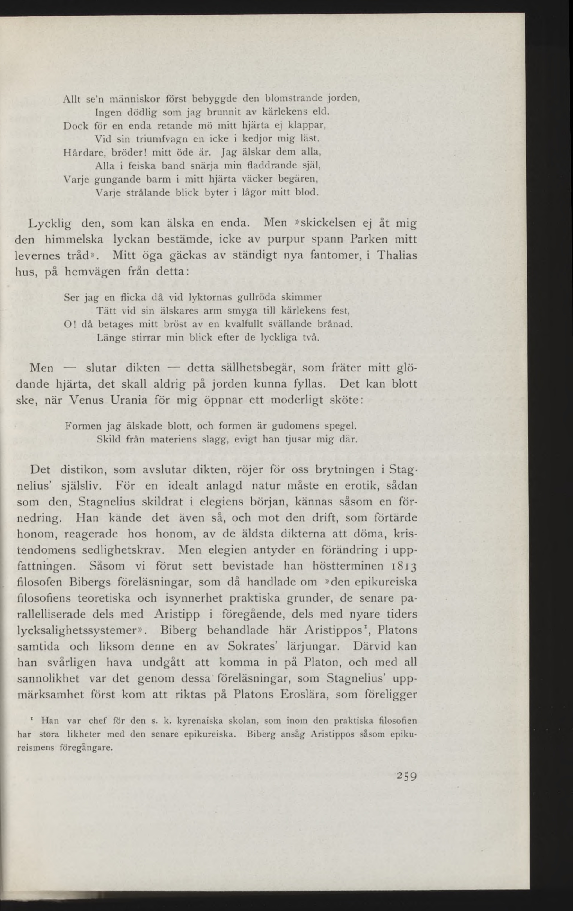 lycksalighetssystemer». Biberg behandlade här Aristippos[1], Platons