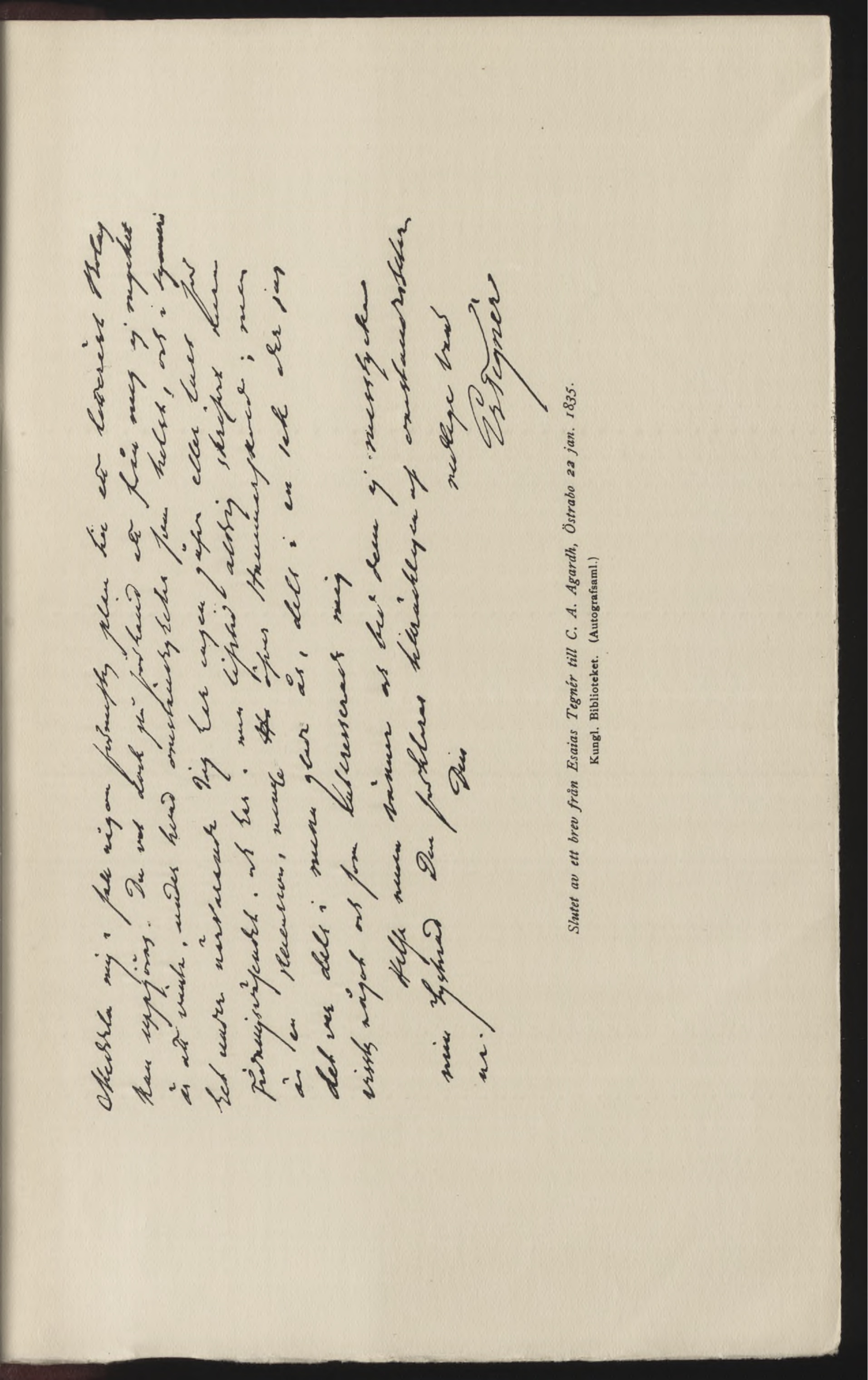 Slutet av ett brev från Esaias Tegnér till C. A. Agardh, Östrabo 22 jan. 1835. Kungl. Biblioteket. (Autografsaml.) |