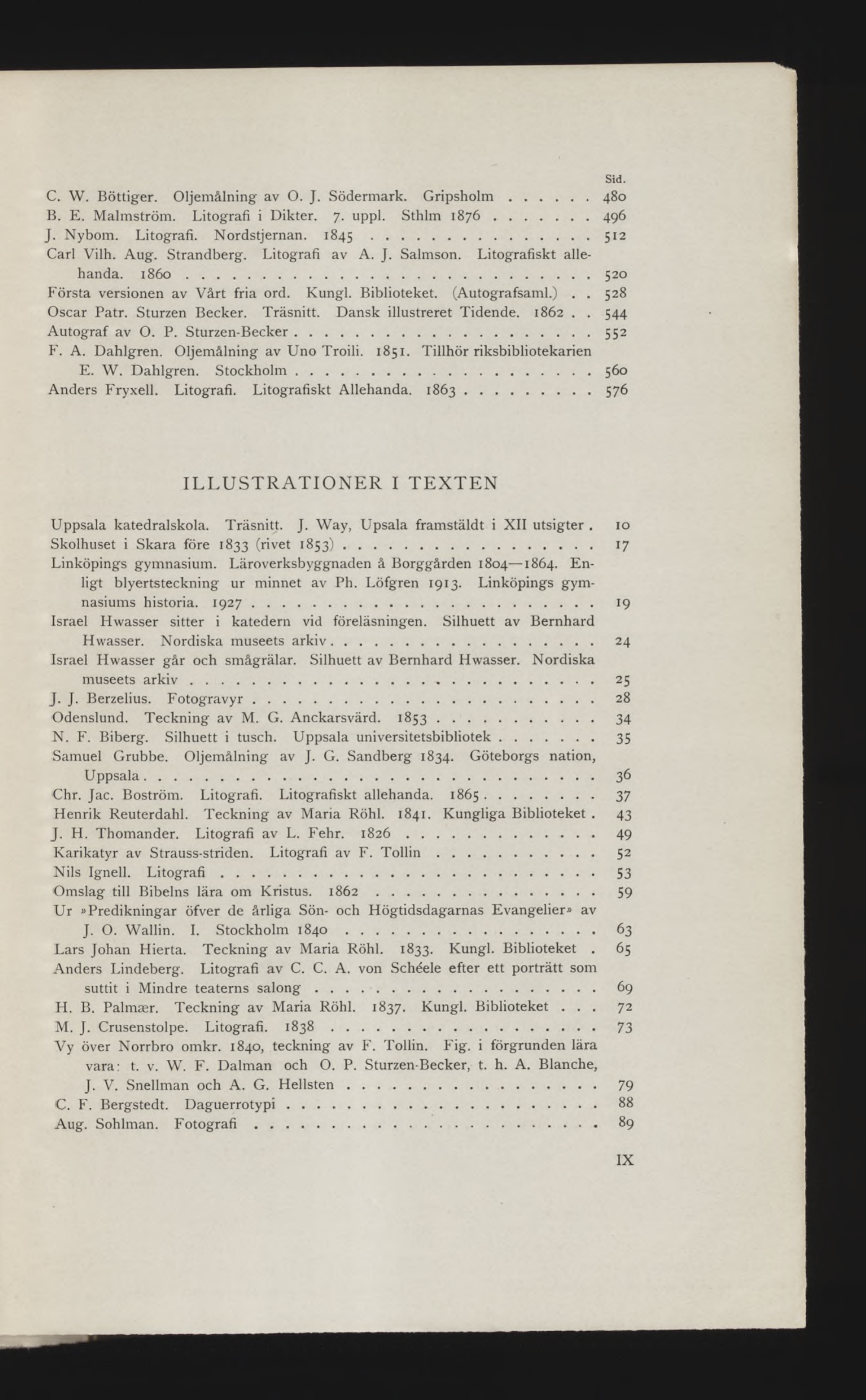 B. E. Malmström. Litografi i Dikter. 7. uppl. Sthlm 1876...........................496