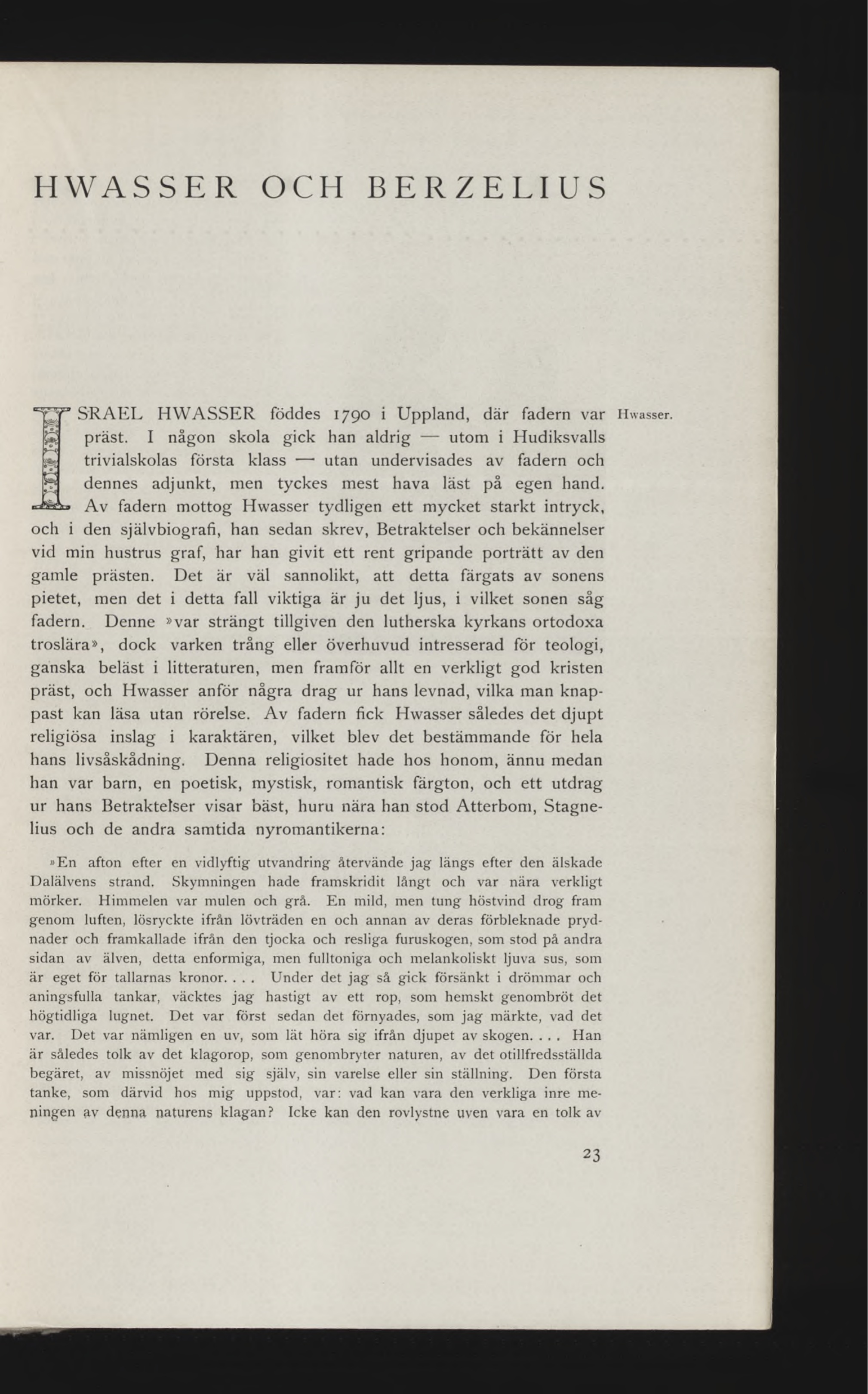 knappast kan läsa utan rörelse. Av fadern fick Hwasser således det djupt