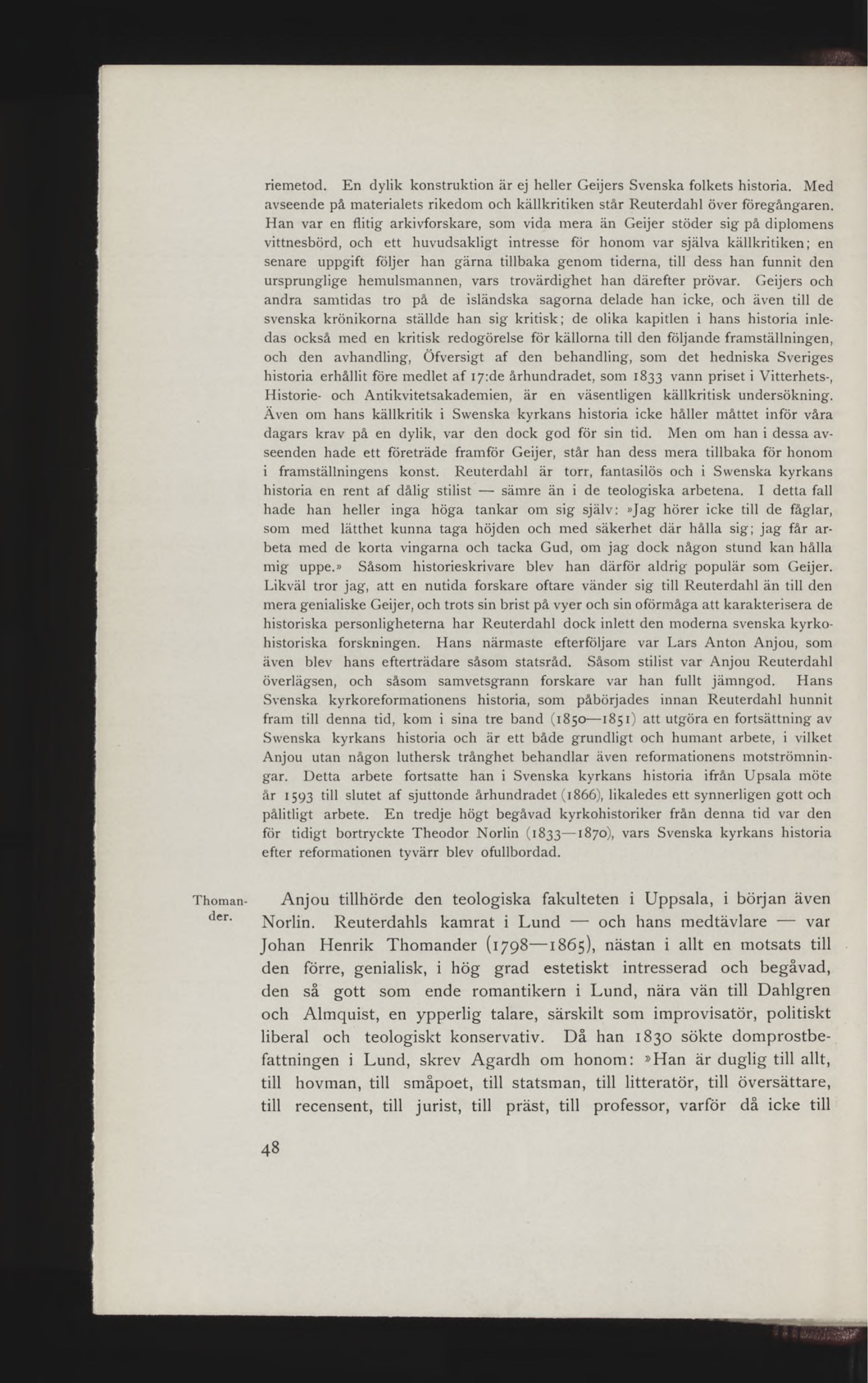 kyrkohistoriska forskningen. Hans närmaste efterföljare var Lars Anton Anjou, som