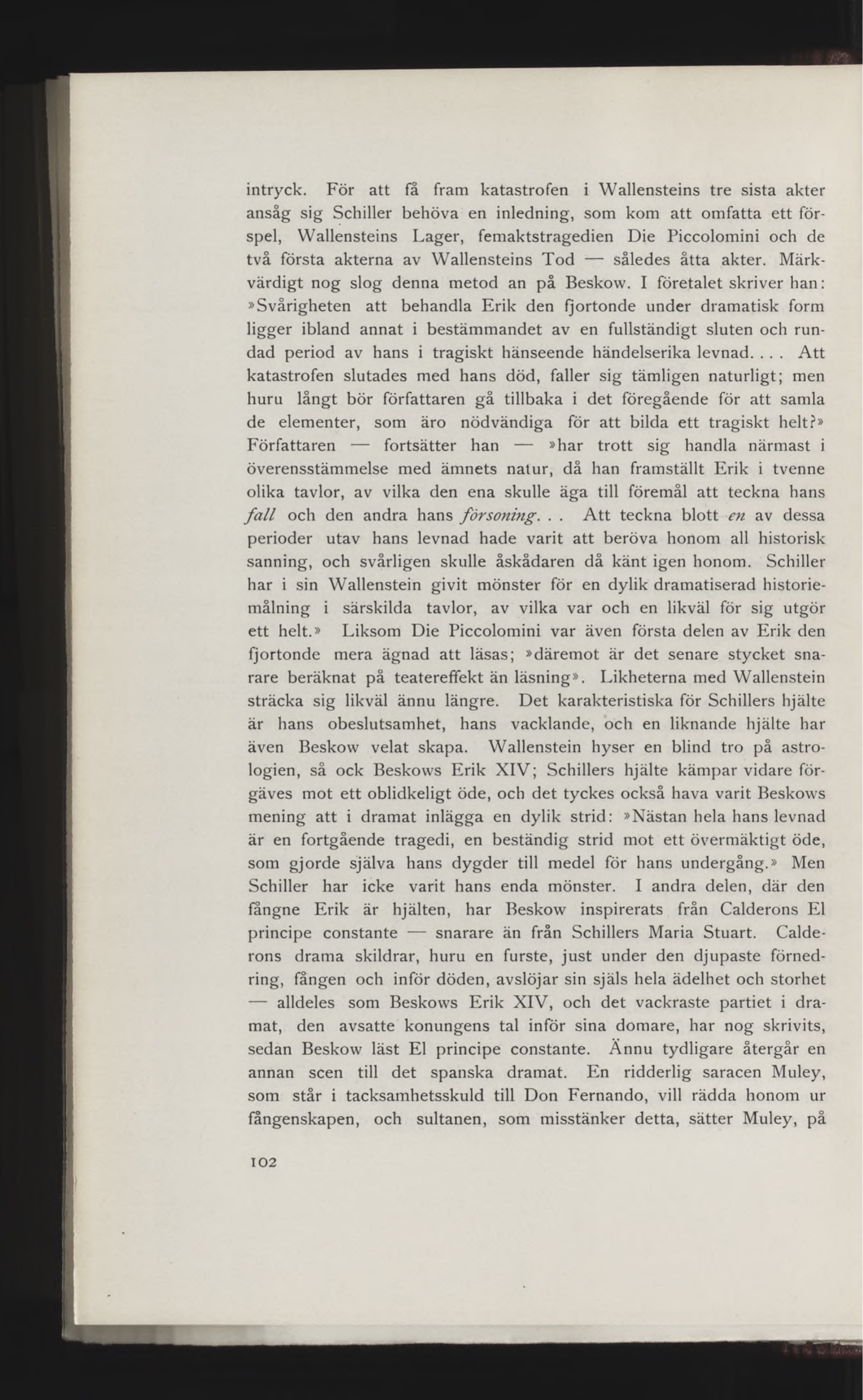 astrologien, så ock Beskows Erik XIV; Schillers hjälte kämpar vidare
