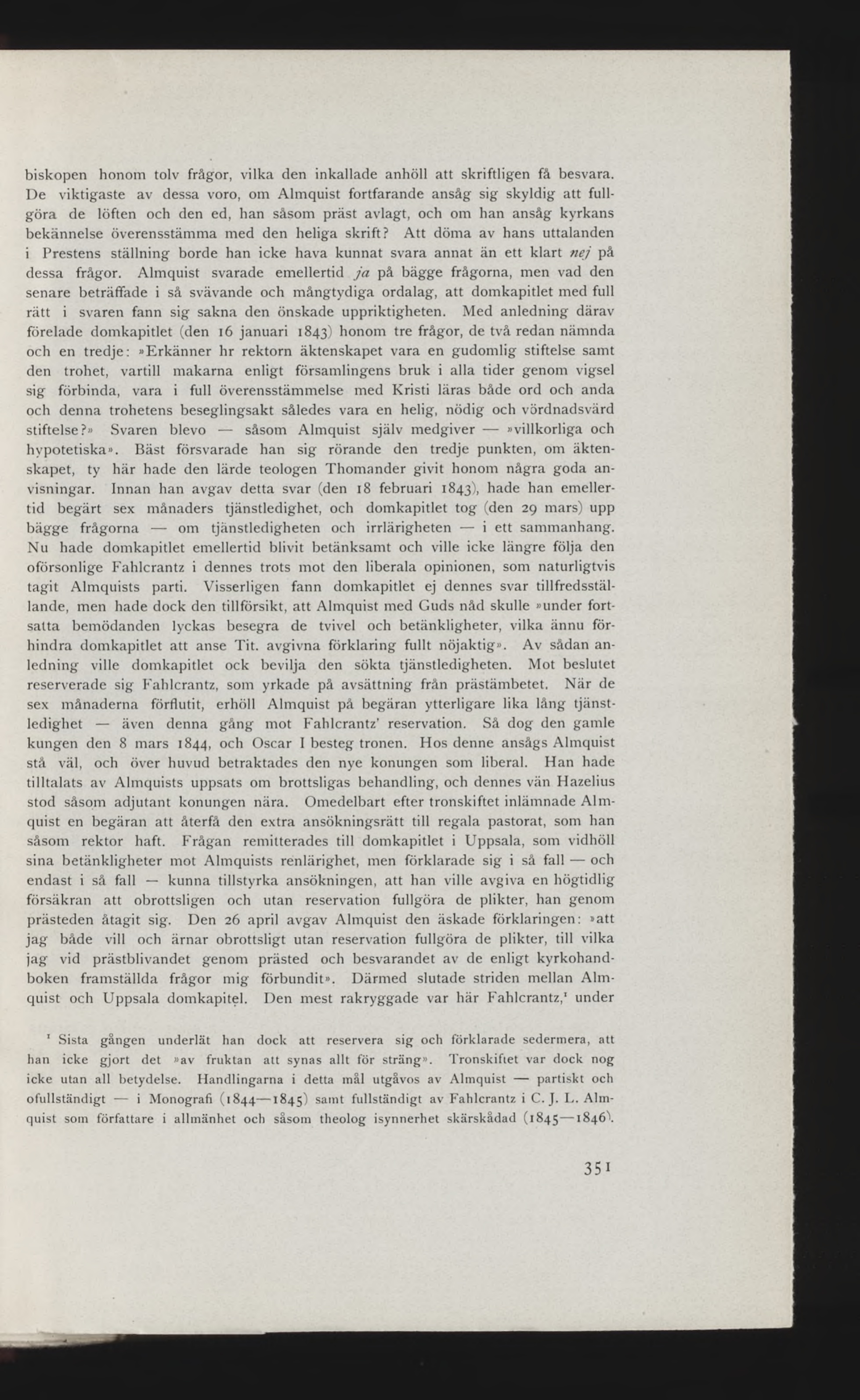 sina betänkligheter mot Almquists renlärighet, men förklarade sig i så fall — och
