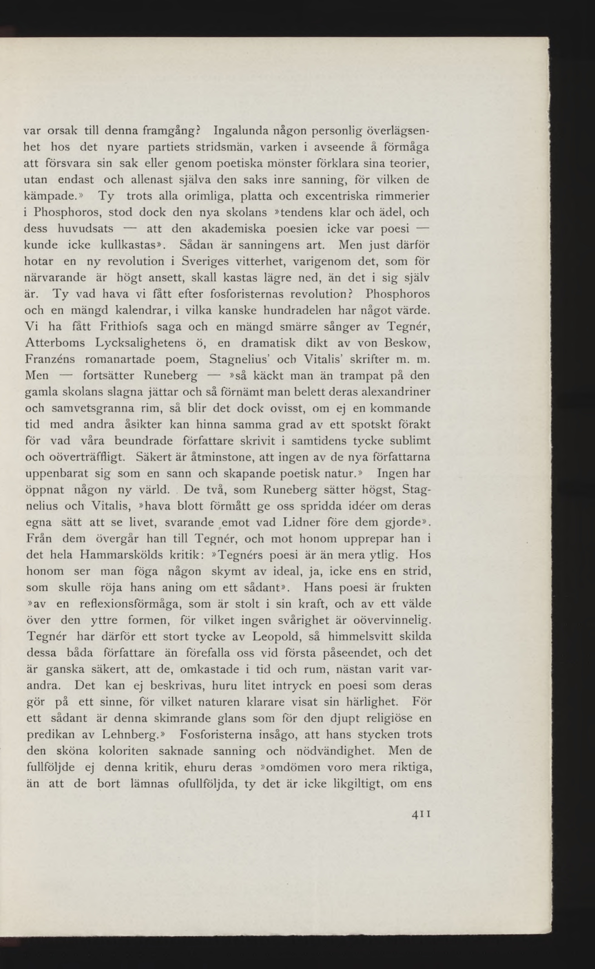 Från dem övergår han till Tegnér, och mot honom upprepar han i