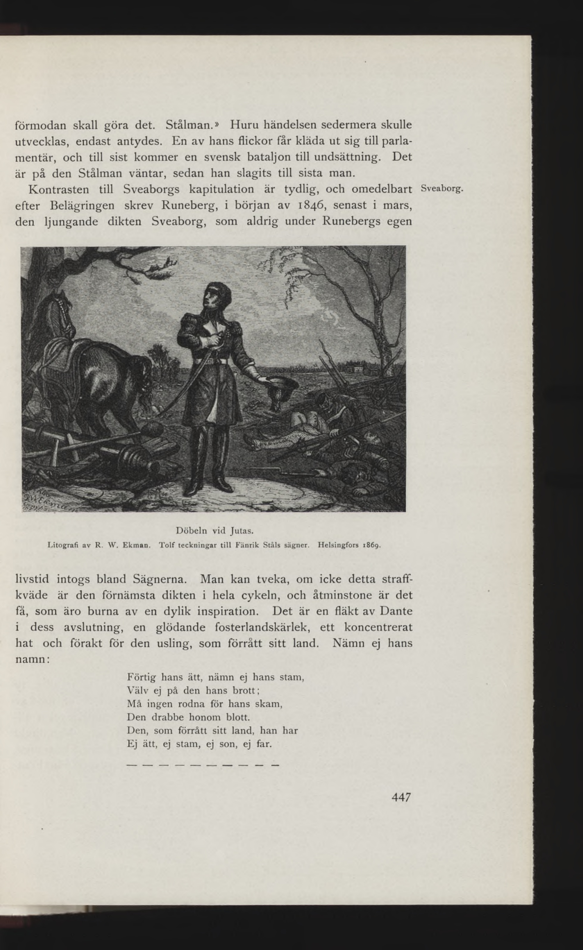 Litografi av R. W. Ekman. Tolf teckningar till Fänrik Ståls sägner. Helsingfors 1869.