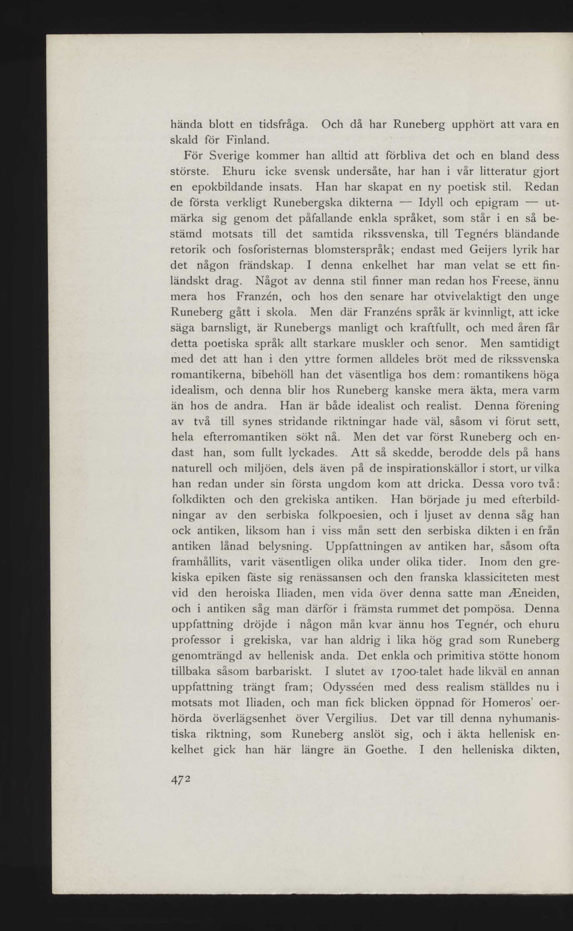 tiska riktning, som Runeberg anslöt sig, och i äkta hellenisk en-
