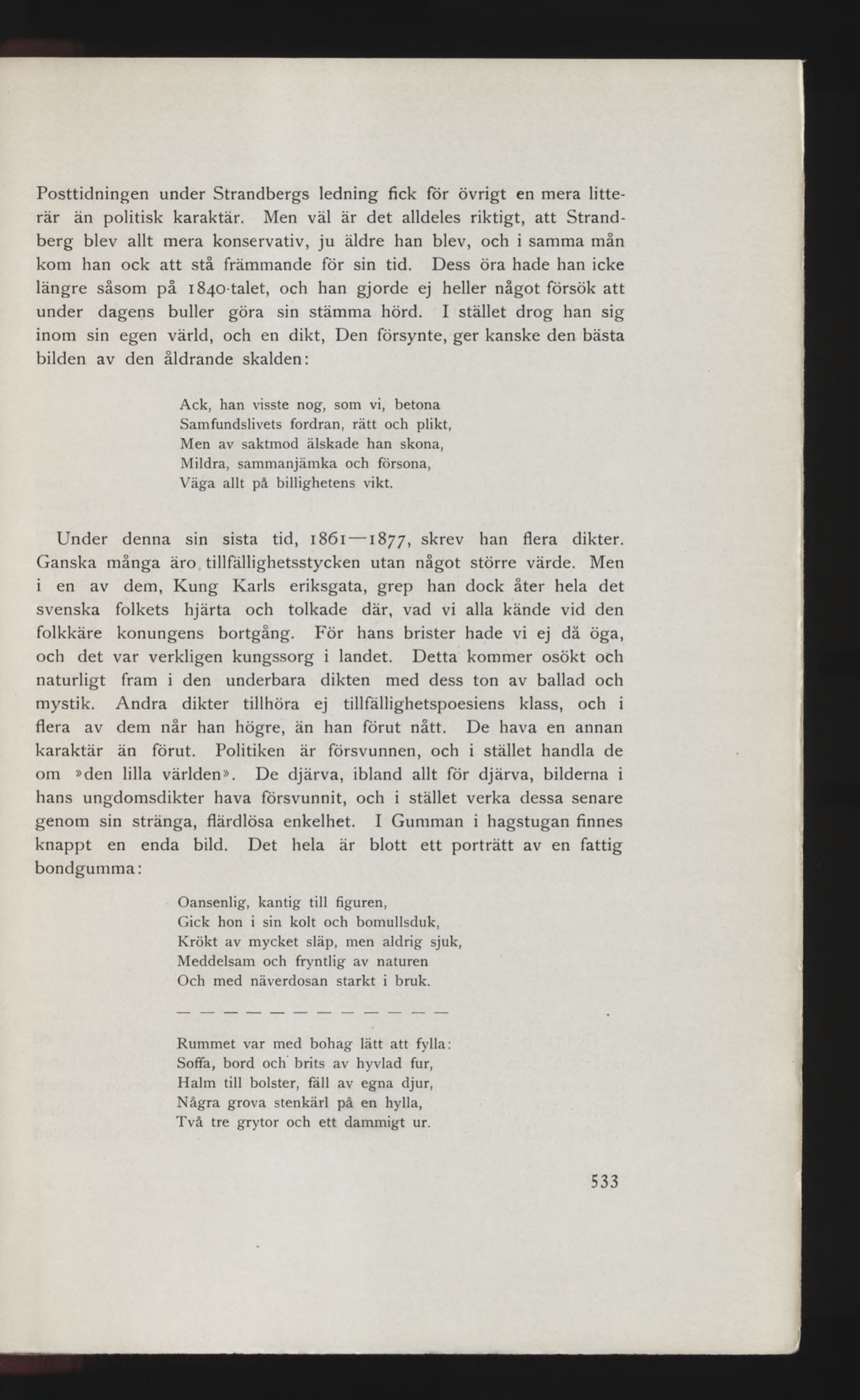Posttidningen under Strandbergs ledning fick för övrigt en mera litte-