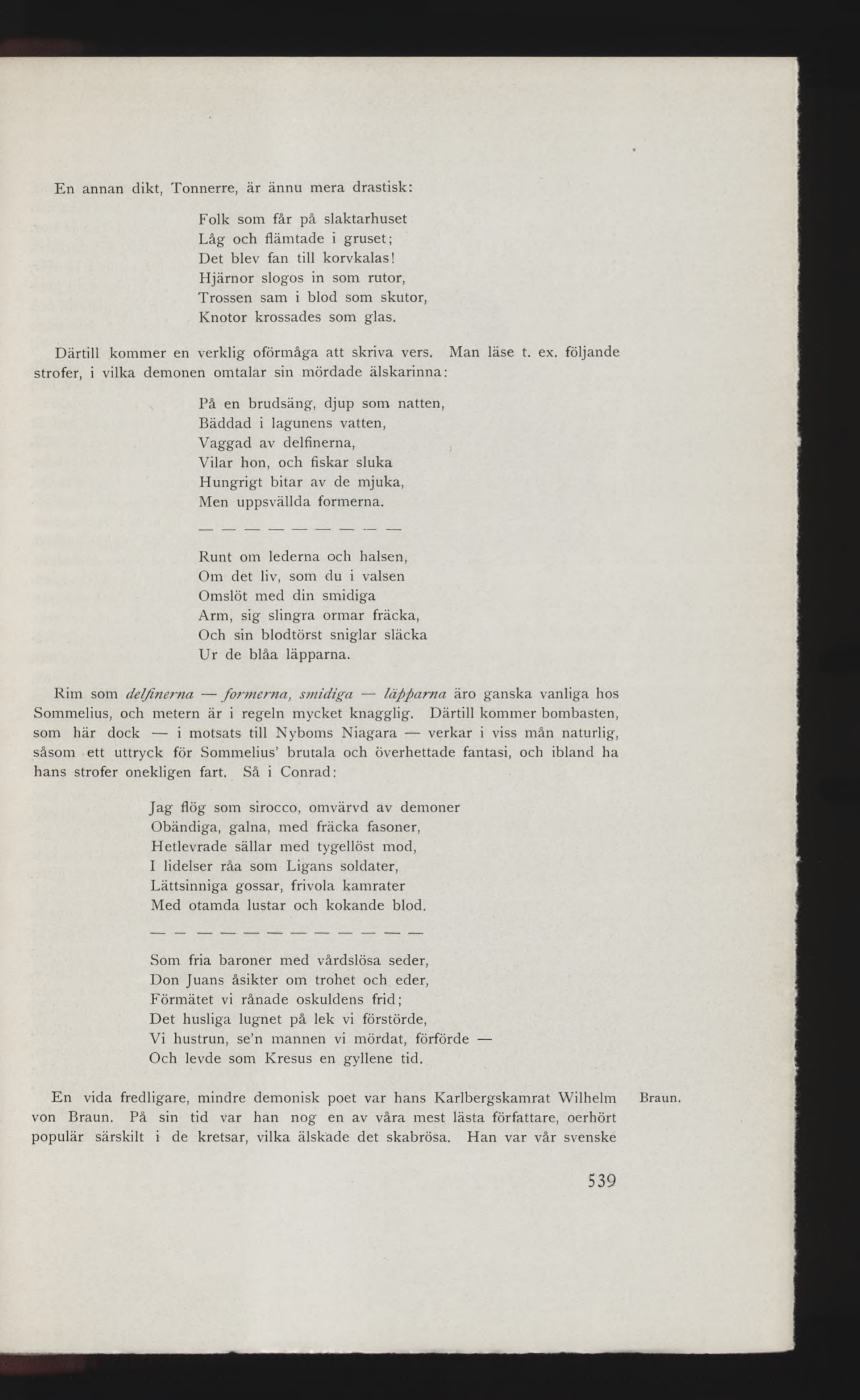 En vida fredligare, mindre demonisk poet var hans Karlbergskamrat Wilhelm Braun,