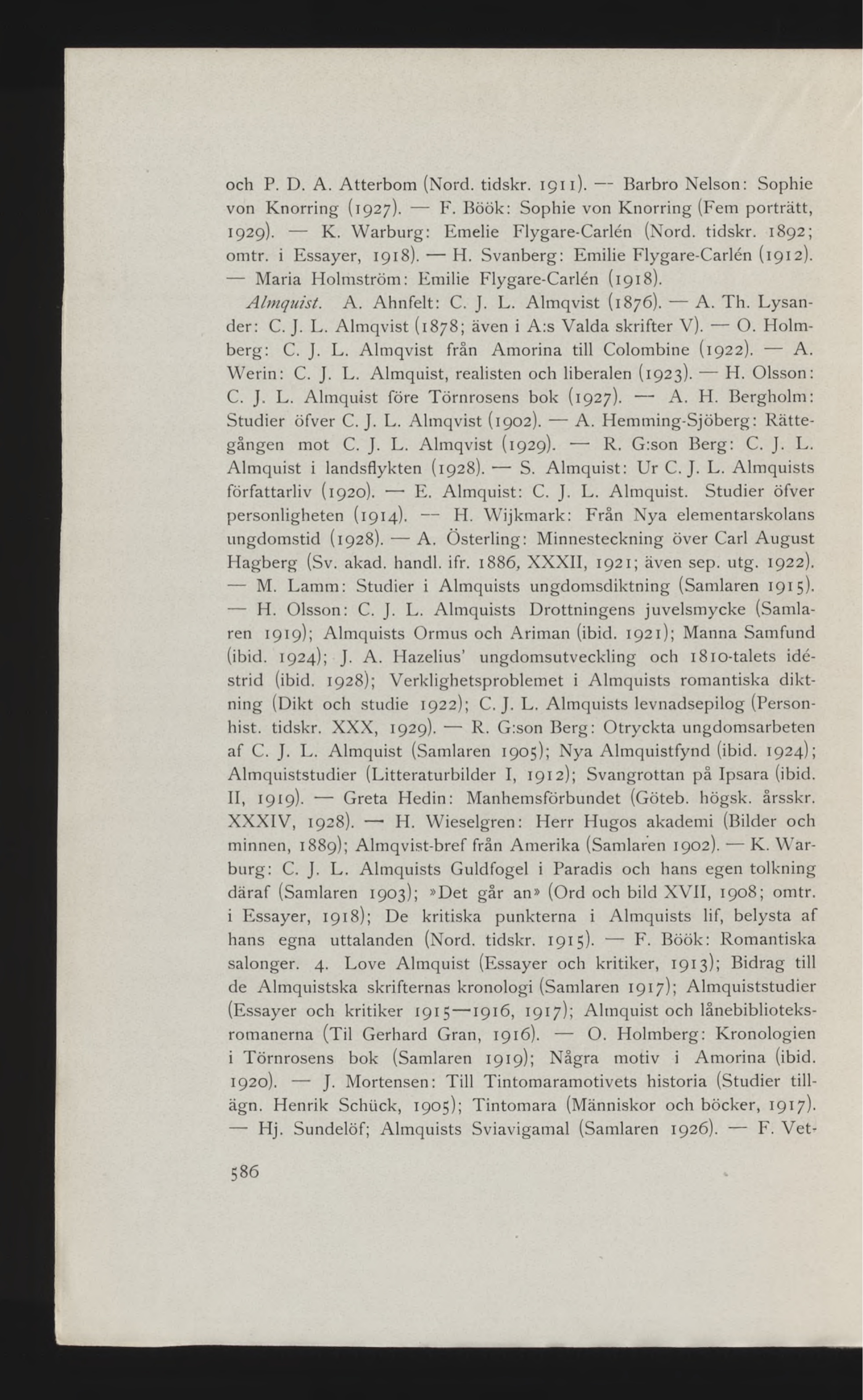af C. J. L. Almquist (Samlaren 1905); Nya Almquistfynd (ibid. 1924);