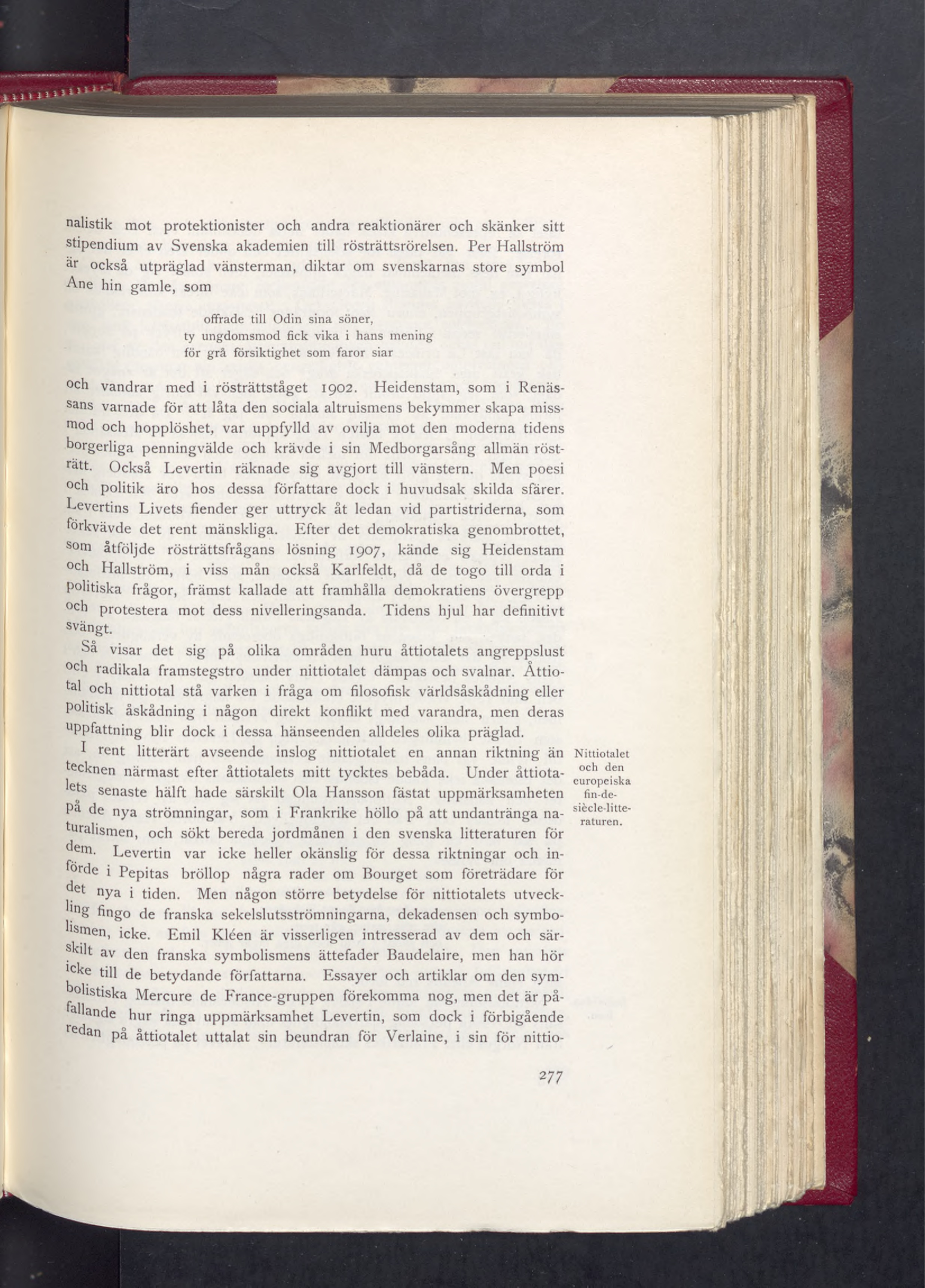 rätt. Också Levertin räknade sig avgjort till vänstern. Men poesi