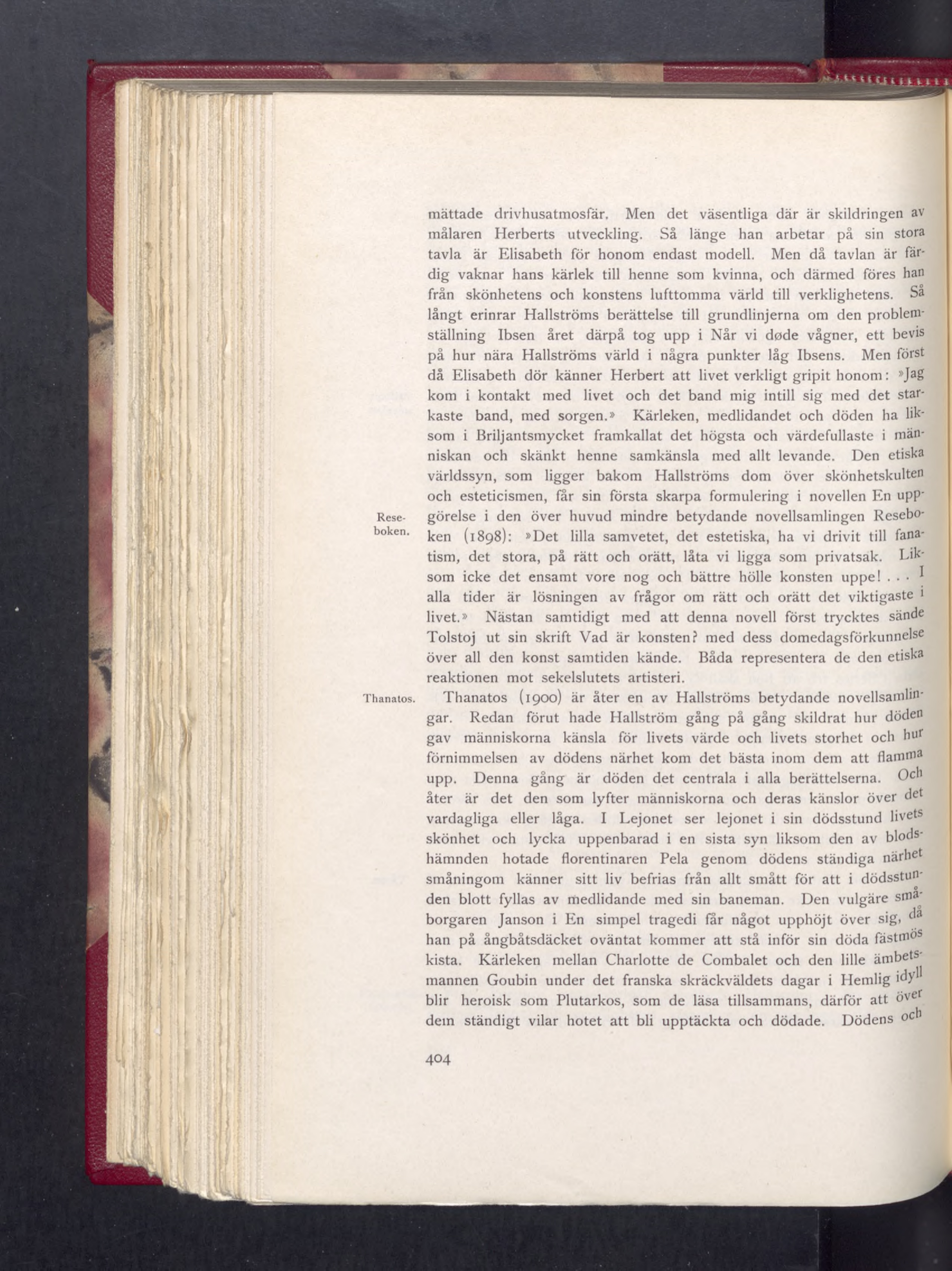 Thanatos (1900) är åter en av Hallströms betydande novellsamlin-