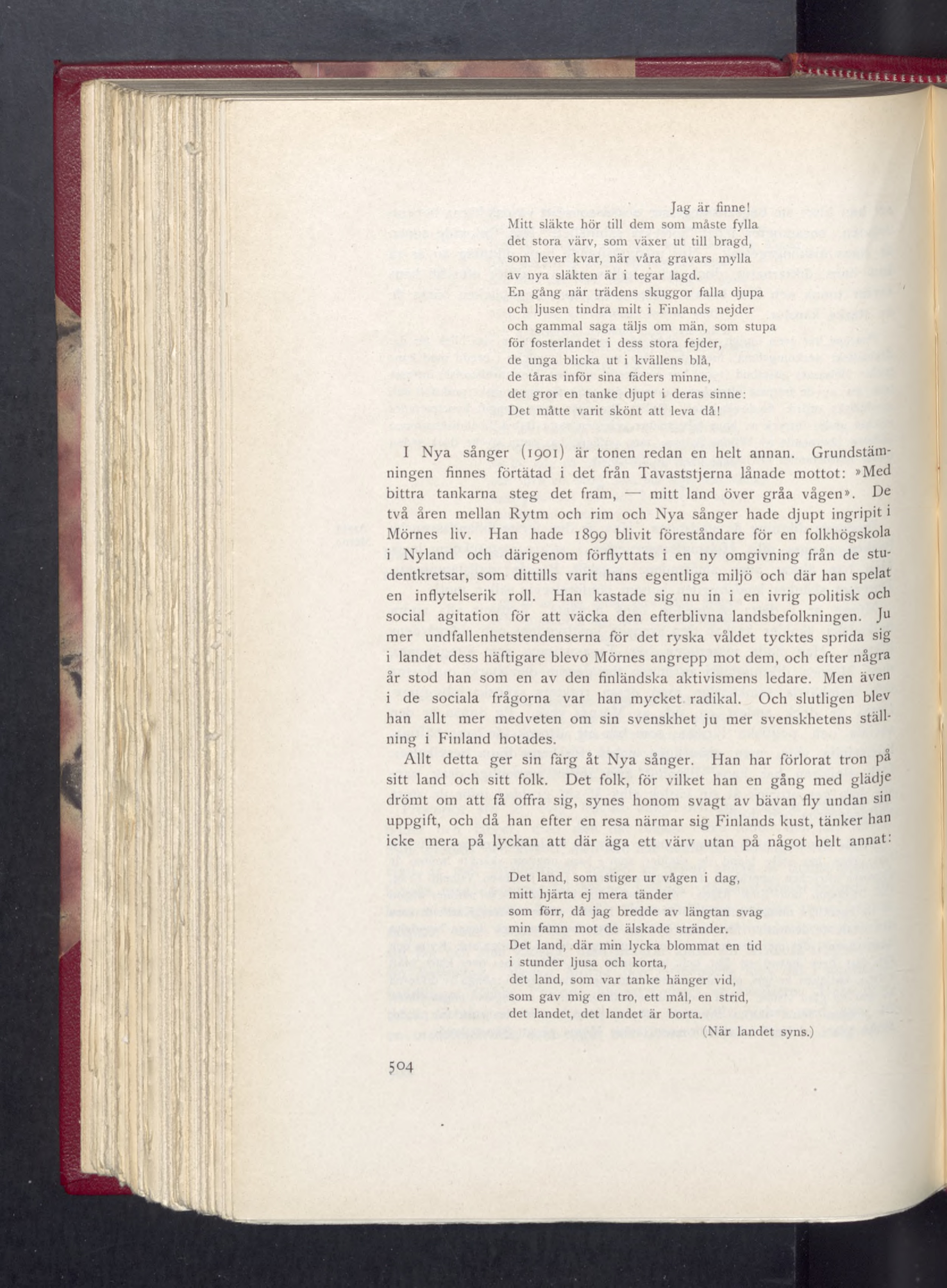 bittra tankarna steg det fram, — mitt land över gråa vågen». De