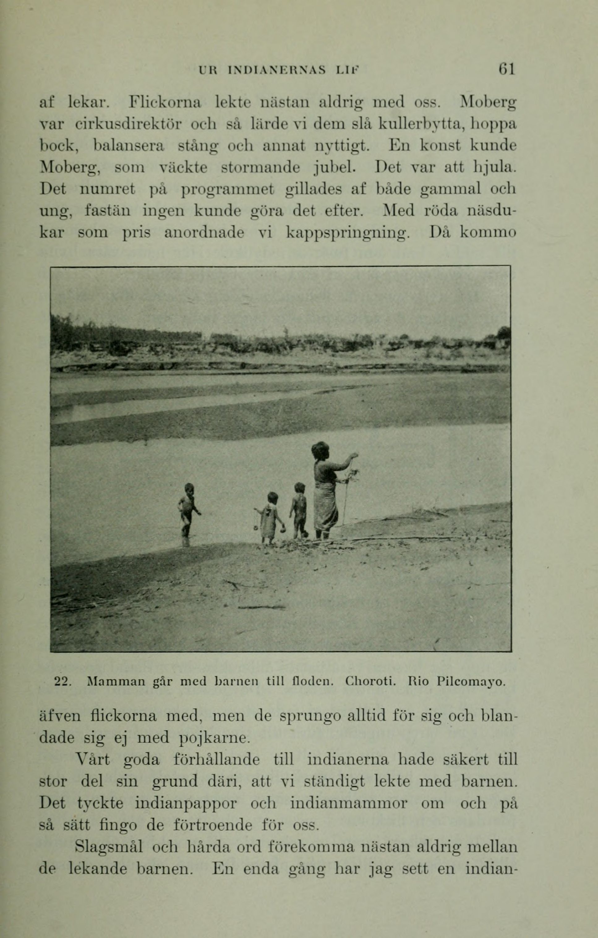 22. Mamman går med barnen till floden. Choroti. Rio Pilcomayo.