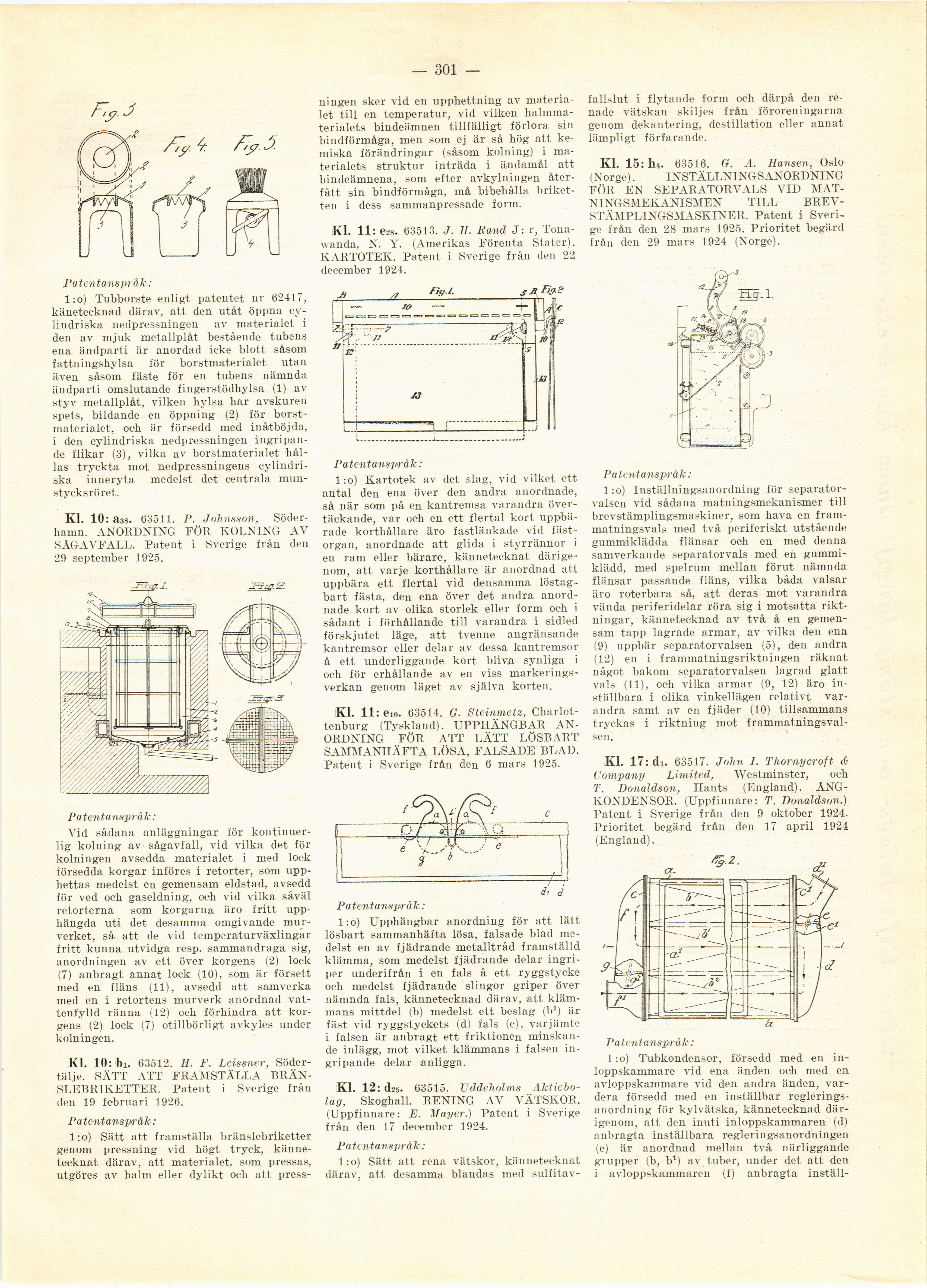 Patent i Sverige från den 6 mars 1925.