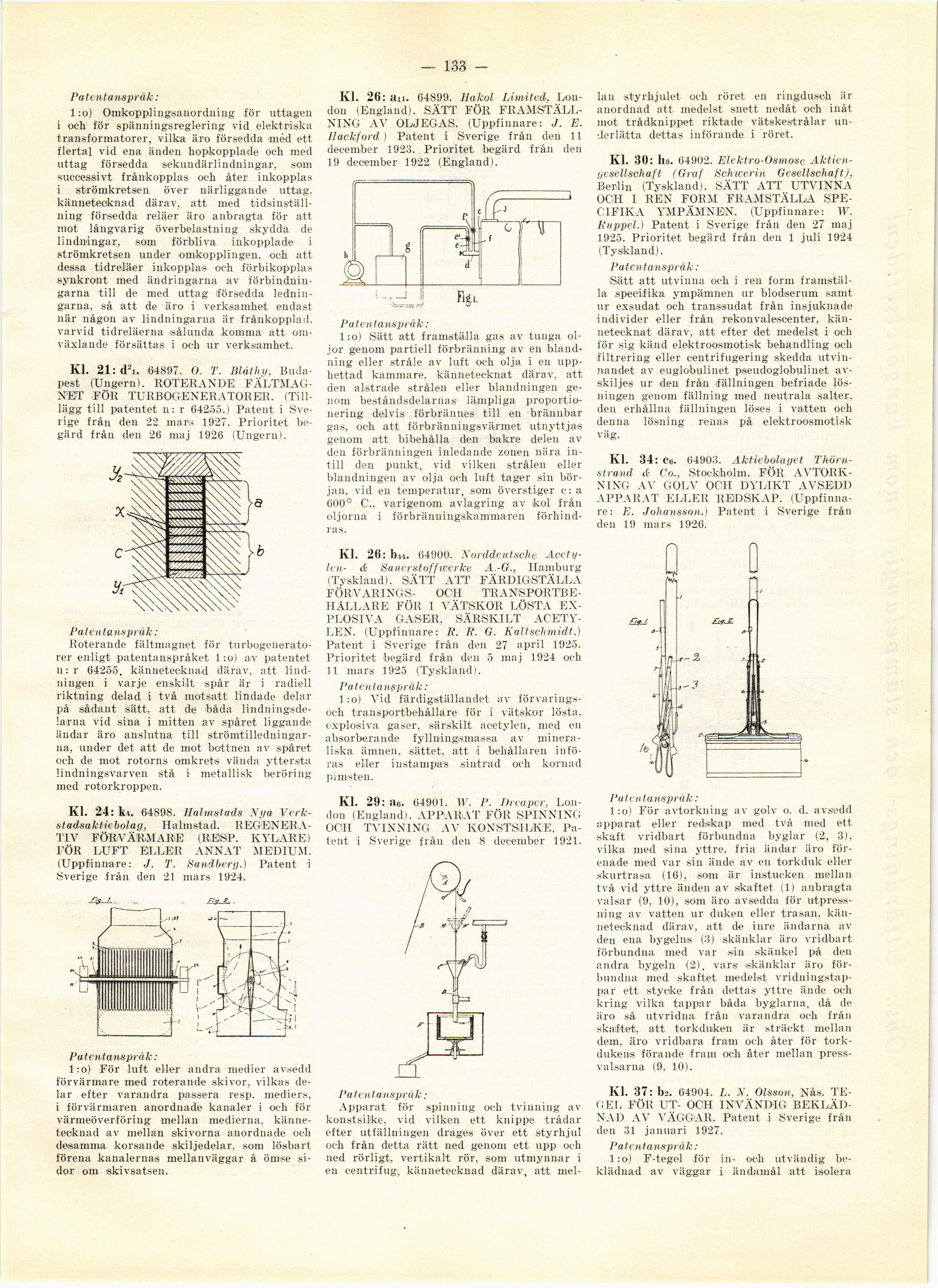 (Uppfinnare: E. Johansson.) Patent i Sverige från