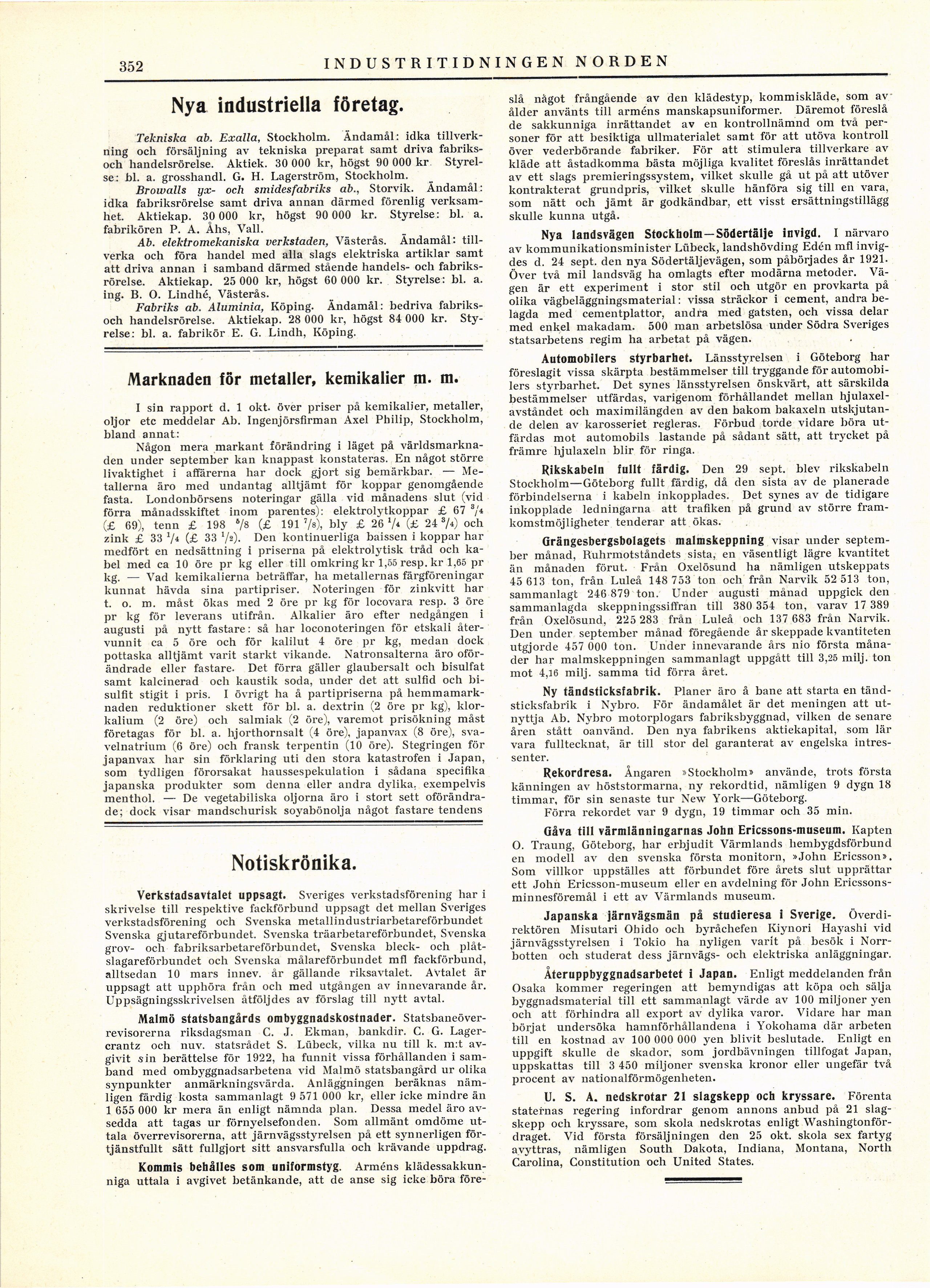 Tekniska ab. Exalla, Stockholm. Ändamål: idka
