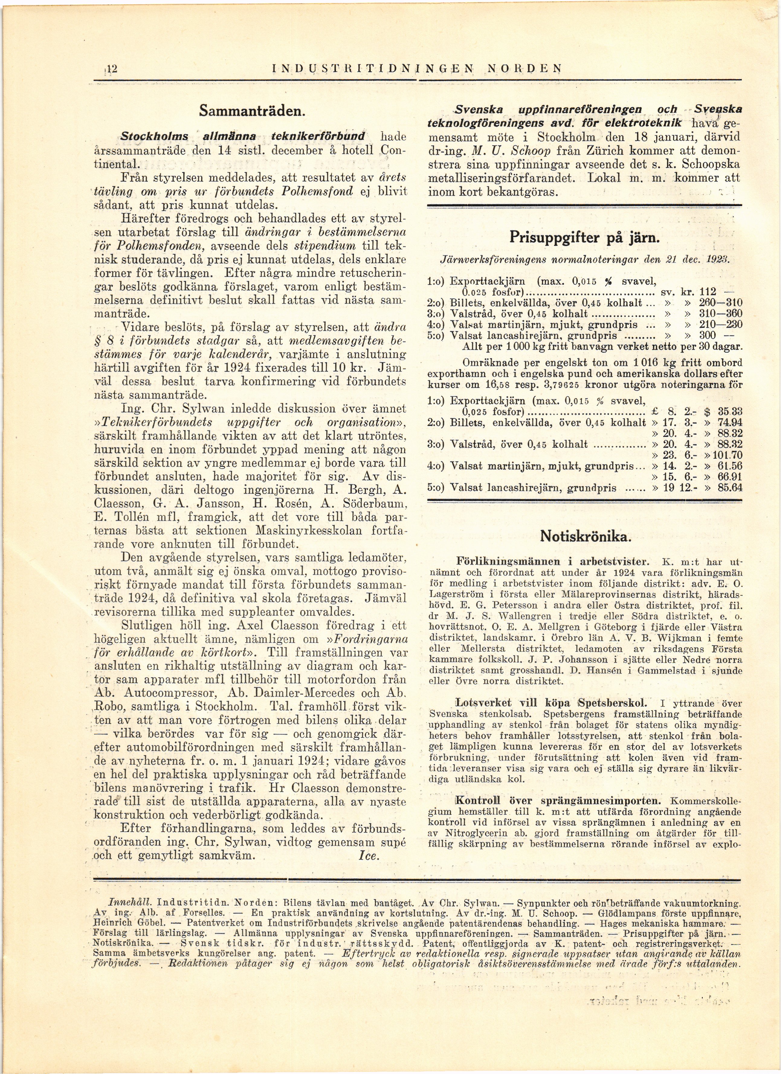 Innehål.l. Industritidn. Norden: Bilens tävlan med bantåget. Av Chr. Sylwan.—■ Synpunkter oeh rön^beträffande vakuumtorkning.
