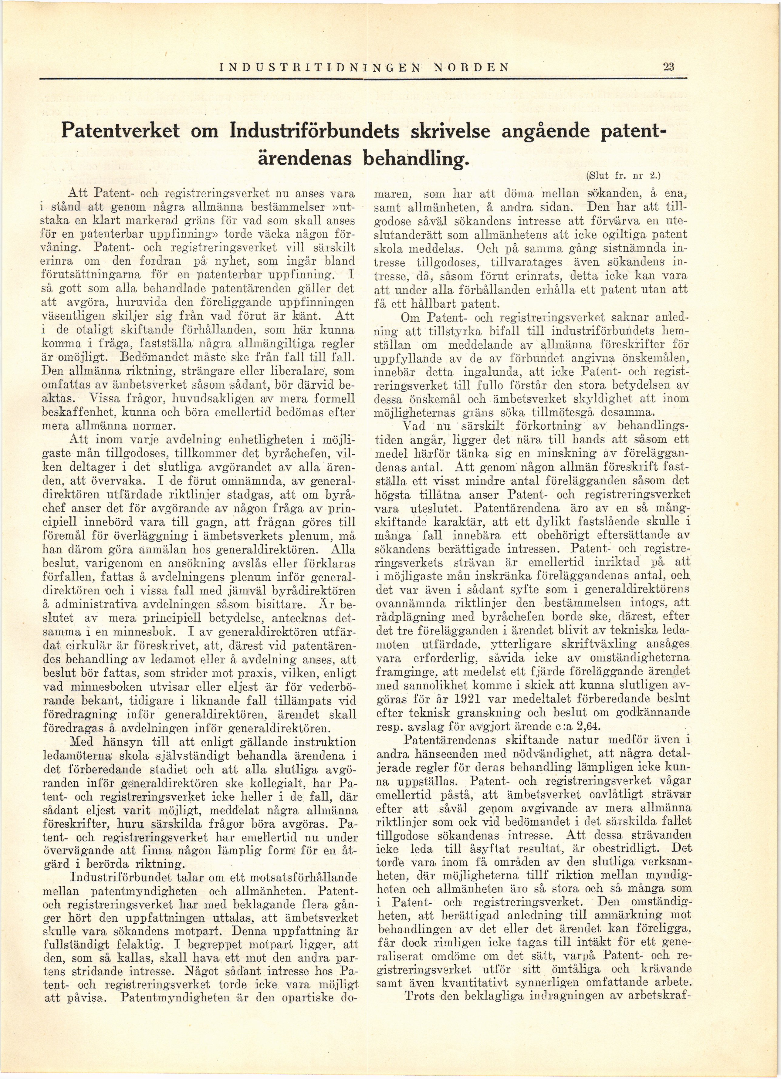 Pa-tent- och registreringsverket torde icke vara möjligt