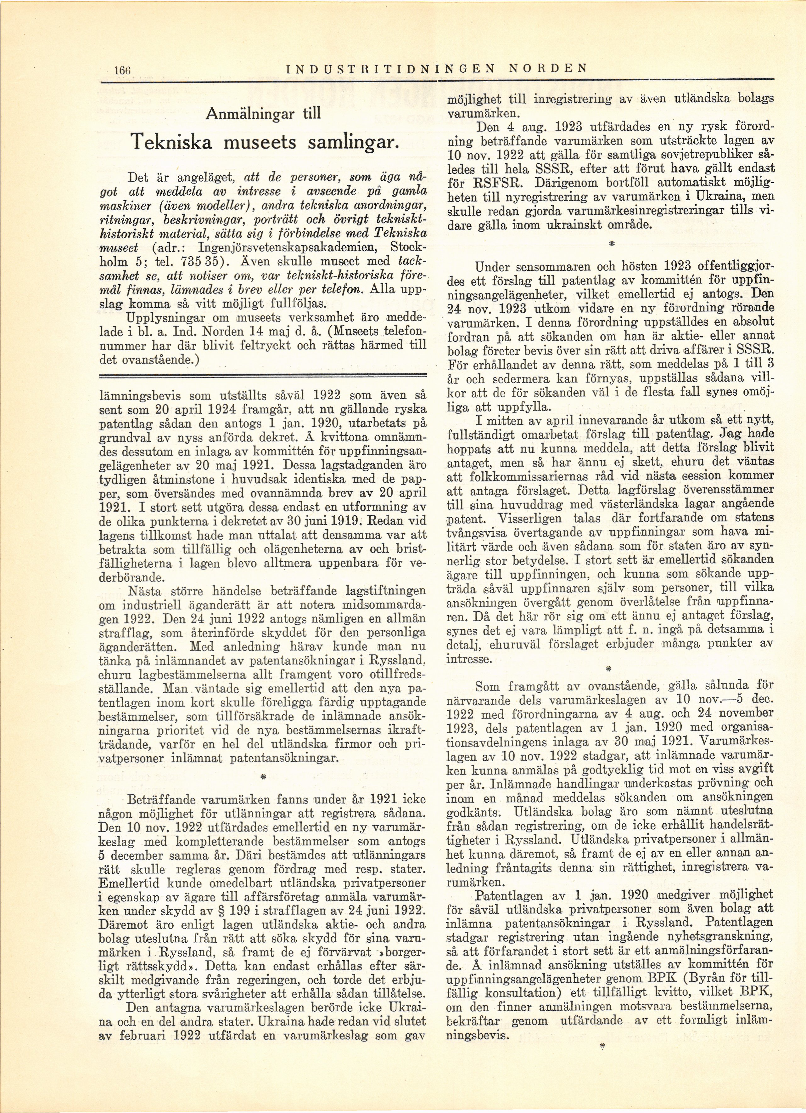 meddelade i bl. a. Ind. Norden 14 maj d. å. (Museets