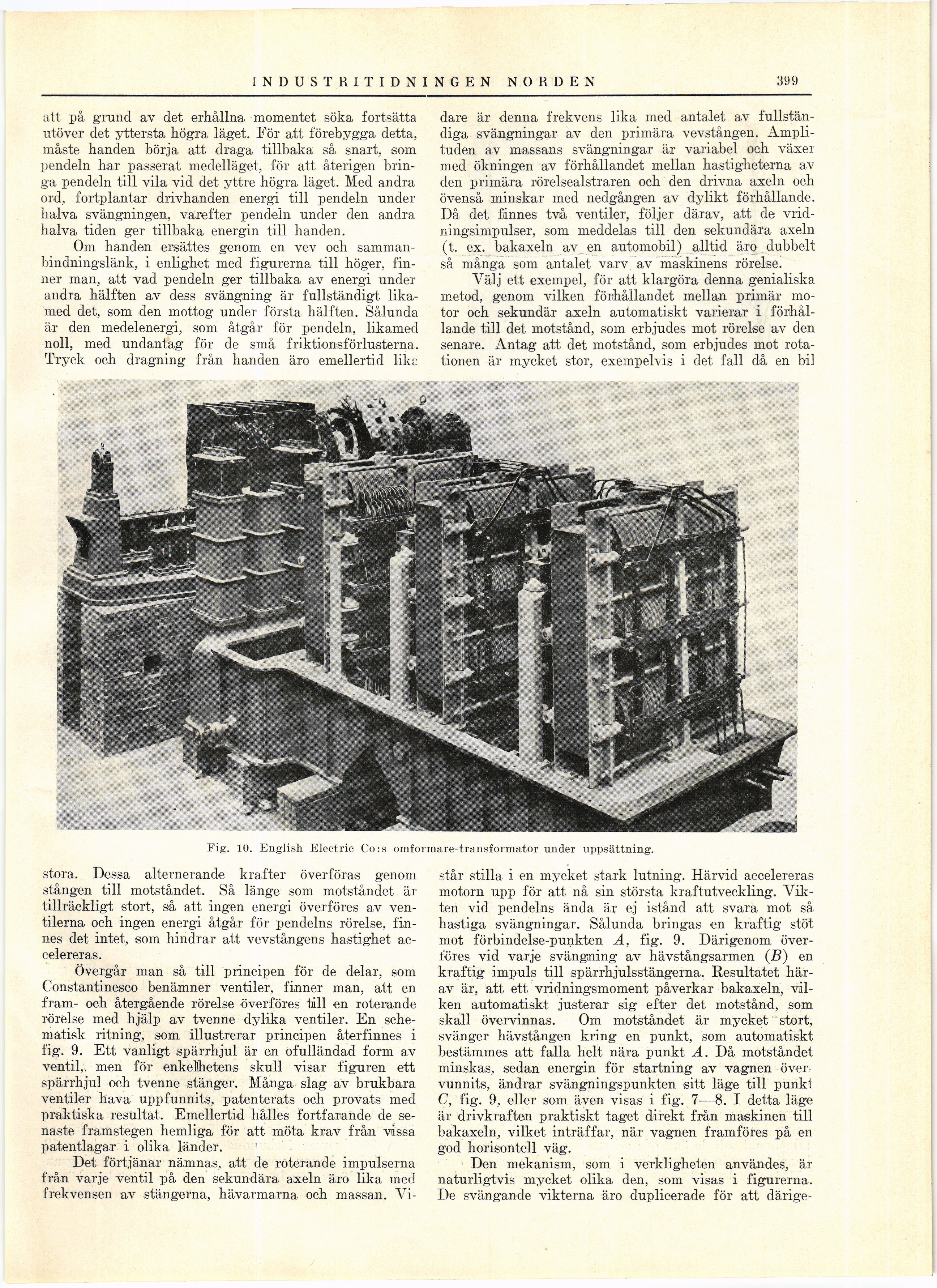Fig. 10. English Electric Co:s omformare-transformator under uppsättning.